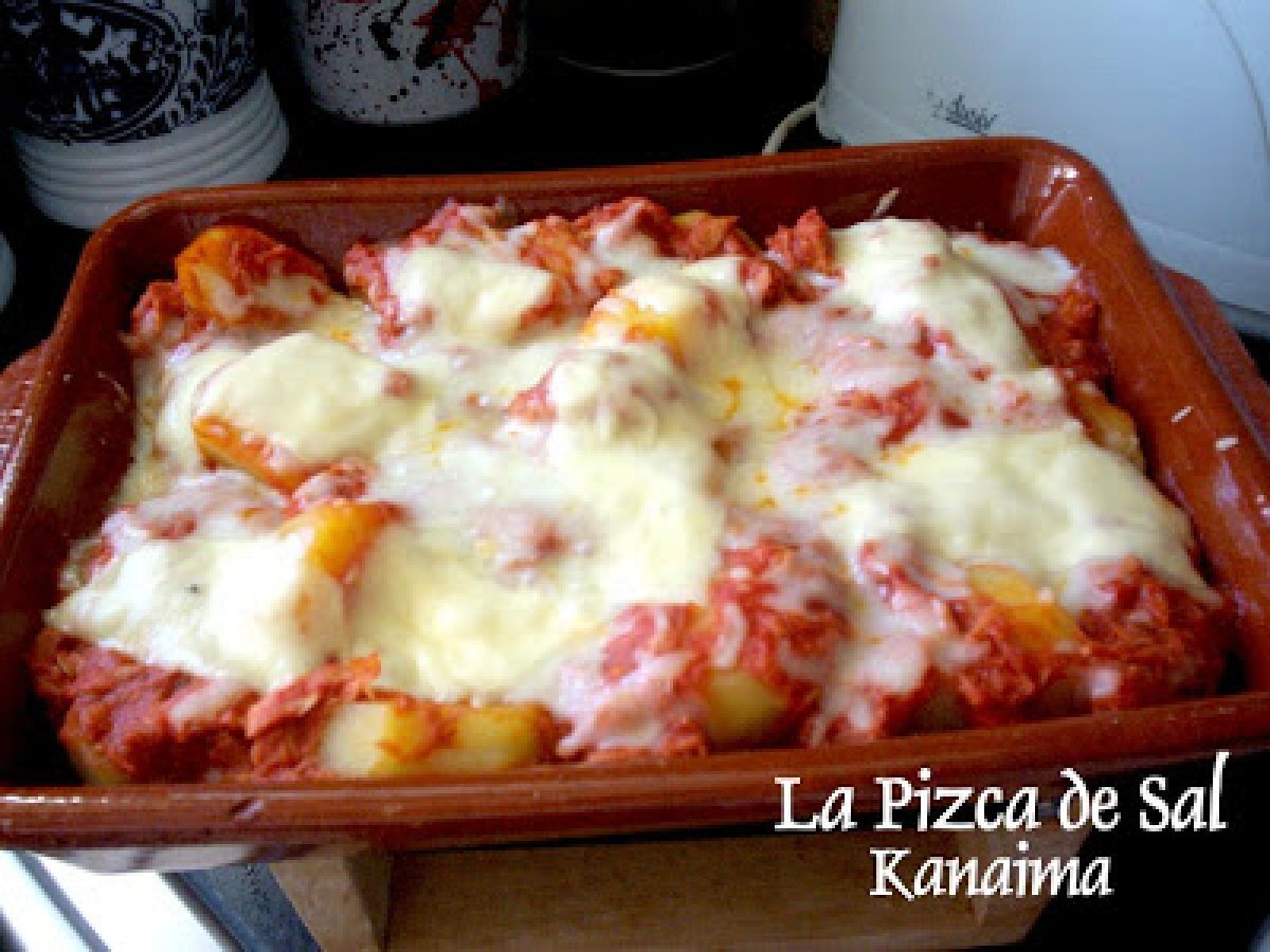 Papas al atún gratinadas AnteriorSiguiente PlatoFácil25 min Enviar esta receta a un amigo Imprimir esta página Preguntar al autor Publicar la foto de esta receta Ingredientes 2 Dos laticas de atún en agua o aceite, a su gusto, yo las usé con aceite. Salsa de tomate estilo pasatta, de esa que viene ya espesita pero natural. Pasta de tomate para espesar la salsa Hojitas de albahaca Papas suficientes Agua y sal para hervir las papas Queso mozarella rallado o en trozos