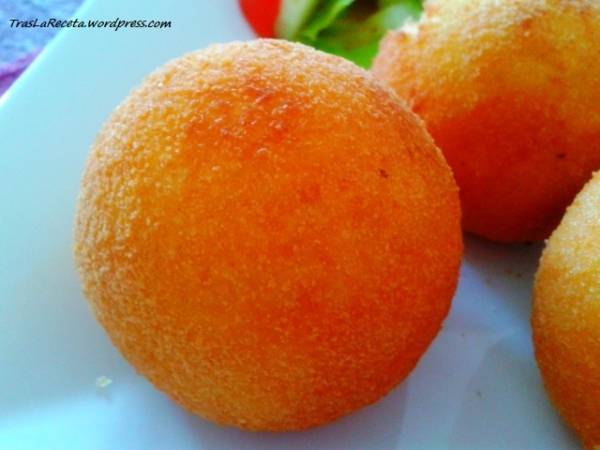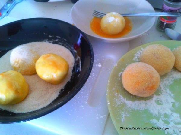Cuando hayas formado todas las bolas que te haya permitido el puré (unas 8-12) toca pasarlas por huevo y luego por pan rallado. Hay quien primero pone algo de harina de trigo, pero no es necesario. En este proceso ya verás como terminas de darle la forma redondeada sin grandes complicaciones.