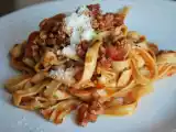Hay una imagen recurrente cuando pensamos en pasta a la boloñesa: un plato repleto de espaguetis con carne picada y tomate frito de brick, rápido de preparar y aún más rápido de devorar, especialmente si hay niños de por medio. Pero cuando hablamos de unos auténticos tagliatelle al ragù alla bolognese, hablamos de otra cosa. Este plato emblemático de la cocina boloñesa no se cocina con prisas, ni con atajos. Se basa en una salsa boloñesa o, mejor dicho, ragù alla bolognese casero cocinado a fuego lento durante horas, con tomate triturado natural, carne de ternera bien dorada, hortalizas cortadas con precisión y un toque de vino tinto. El resultado es una salsa densa, suave, rica en matices, que se integra a la perfección con la pasta. Porque la clave no está solo en la salsa, sino en cómo se funde con los tagliatelle: pasta al huevo, porosa y ancha, ideal para acompañar este tipo de guisos. Esta receta tradicional recuerda a la cocina italiana de verdad. A esa manera de cocinar sin prisas, con lo que hay, como se ha hecho siempre. La que podría haber preparado una nonna, sin grandes aspavientos, pero con mucho oficio. Basta un buen ragù y un puñado de tagliatelle frescas al huevo para acercarse a la perfección.