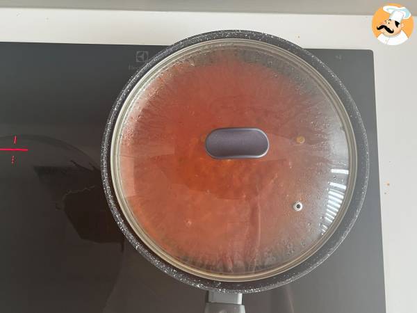 Pon la tapa de la sartén y cocina a fuego lento de 15 a 30 minutos. Transcurrido este tiempo, quita la ramita de albahaca