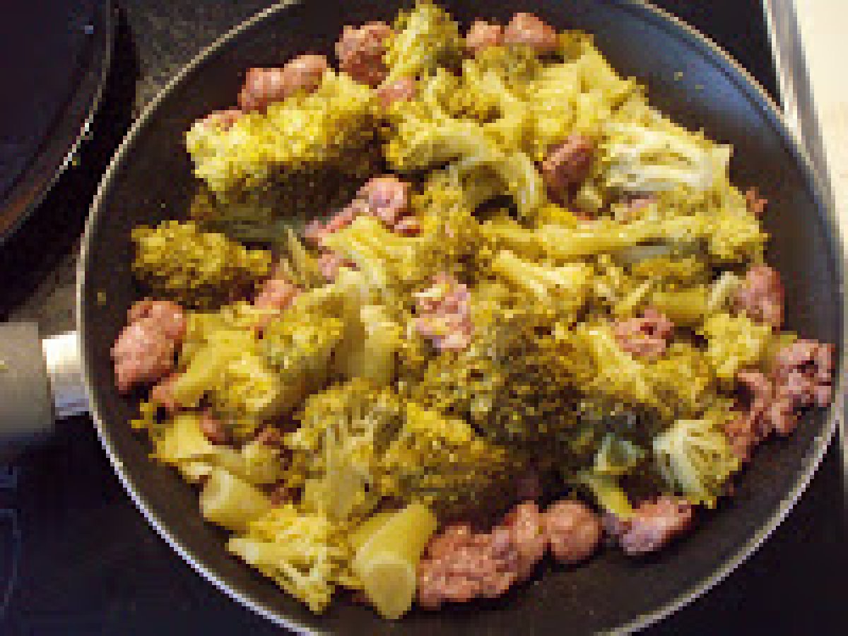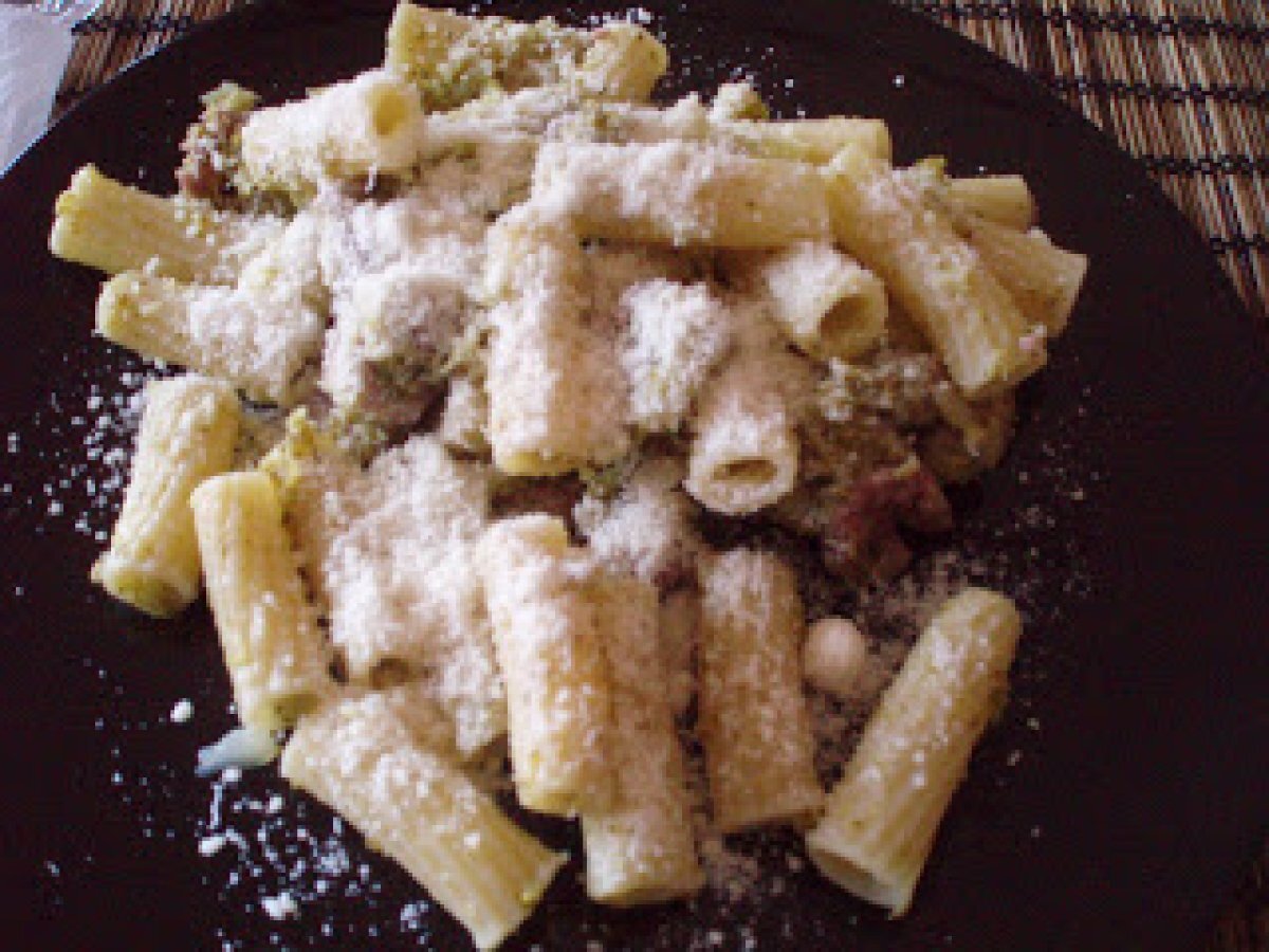 Pasta con broccoli e salciccia (pasta con brócolis y salchicha) AnteriorSiguiente PlatoFácil25 min Enviar esta receta a un amigo Imprimir esta página Preguntar al autor Publicar la foto de esta receta Ingredientes 2 300 g de pasta (aconsejo: penne o orecchiette) 3 salchichas frescas 300 g de brócoli Ajo Guindillas aceite extra virgen parmesano