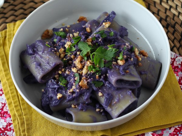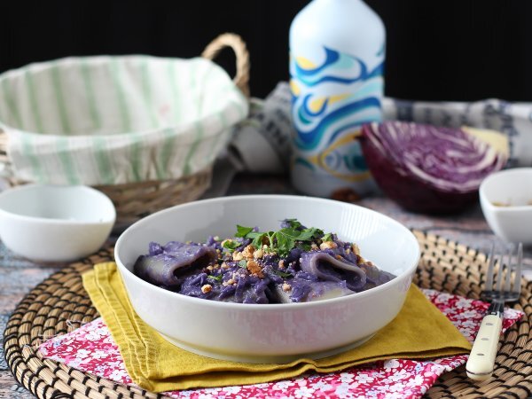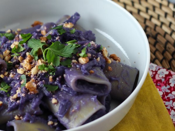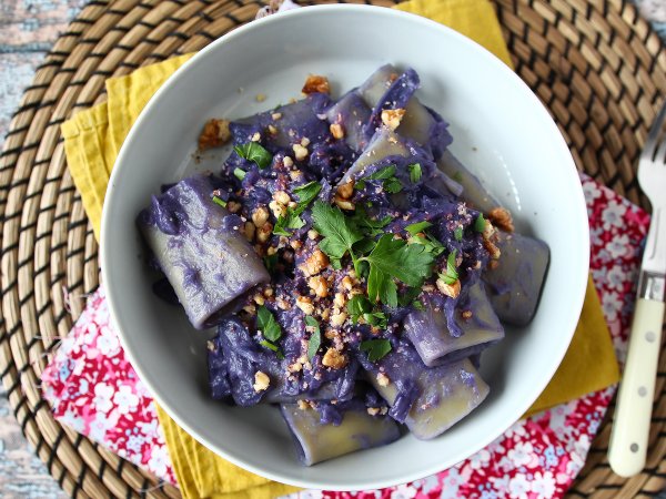 Pasta con lombarda y nueces, para disfrutar de un almuerzo de lo más colorido