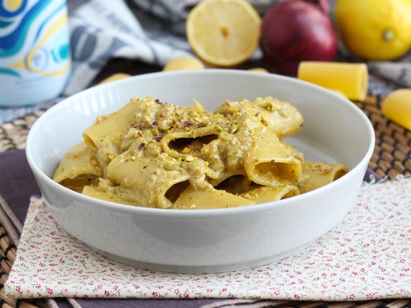 Pasta con una estupenda salsa de atún, pistachos y limón