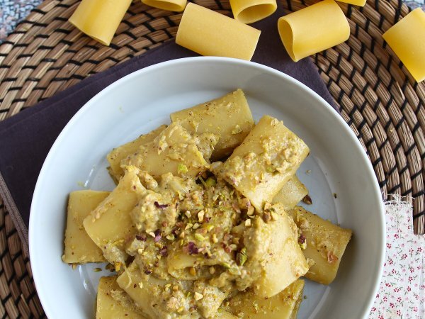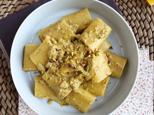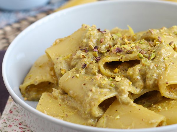 La pasta carbonara o la boloñesa es estupenda pero no para todas las semanas. Muchas veces nos falta un plus de creatividad para encontrar salsas originales para no terminar comiendo siempre lo mismo. Por eso, te proponemos una nueva asociación tan poco habitual como sabrosa: atún en conserva, pistacho, aceite de oliva virgen extra y jugo de limón. Eso es todo lo que necesitas para preparar un plato de pasta que hará las delicias de tus invitados. Nosotros hemos usado paccheri, un tipo de pasta en forma de cilindro que además de muy vistosa permite que la salsa se cuele por dentro para deleitarnos de placer. Y si, todavía necesitas más ideas de salsas originales para tus platos consulta nuestro artículo platos de pasta que no son los típicos. Mientras, te dejamos con el paso a paso de la receta justo a continuación.
