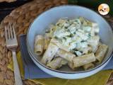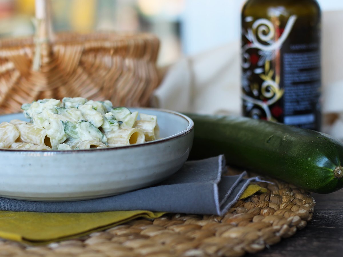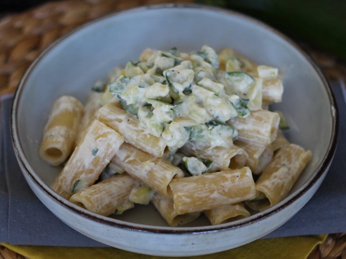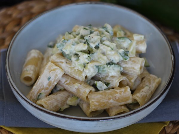 Si estás cansado de la clásica pasta carbonara, si siempre recurres a la salsa boloñesa para condimentar tus macarrones, ya es hora de que le des un toque original a tu próximo plato de pasta ¡Atento a esta rápida y sabrosa receta! Se trata de una pasta al dente, concretamente unos rigatoni, con una untuosa salsa de queso crema que contrasta con unos dados de calabacín salteados. Una agradable combinación de texturas y un placer continuo, bocado tras bocado. ¿Quieres probar esta receta vegetariana? Te lo explicamos paso a paso.