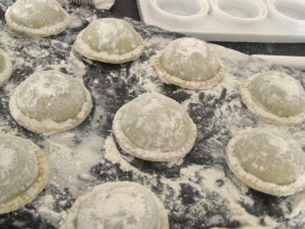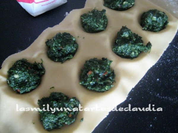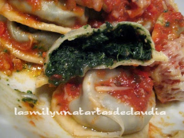 Pasta fresca casera, sorrentinos de espinacas AnteriorSiguiente PlatoFácil30 min1058 Kcal Enviar esta receta a un amigo Imprimir esta página Preguntar al autor Publicar la foto de esta receta Ingredientes 2 Pasta: 300 g de harina 2 huevos 1 chorrito de aceite 1 chorrito de agua Relleno: 800 g de espinacas 1 cebolla pequeña 1/2 pimiento rojo 1 paté de jamón Sal-Pimienta c/n 100 g de queso parmesano Costo estimado: 6.18Euros€ (3.09€/porción)