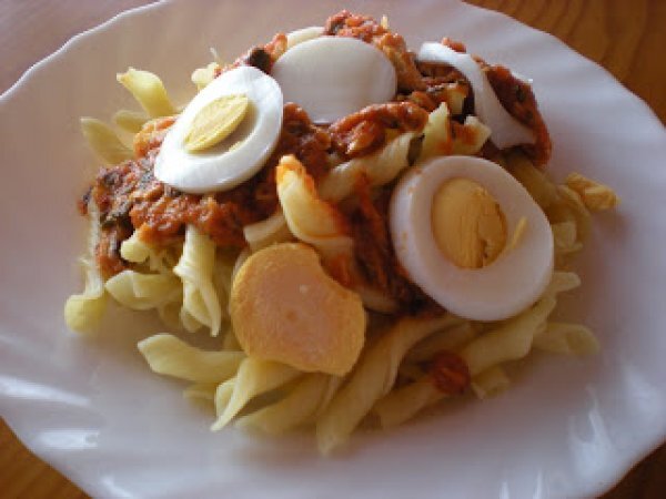 Pasta italiana lorchietti caserecci PlatoFácil35 min Enviar esta receta a un amigo Imprimir esta página Preguntar al autor Publicar la foto de esta receta Ingredientes 4 350 gramos de pasta lorchietti 180 gramos de caballa en aceite 500 gramos de tomate triturado 2 huevos cocidos ½ vaso de vino blanco 1 cucharadita de perejil 1 cucharadita de ajo seco molido 4 cucharas de aceite oliva 1 cucharadita de sal 1 cucharadita de condimento