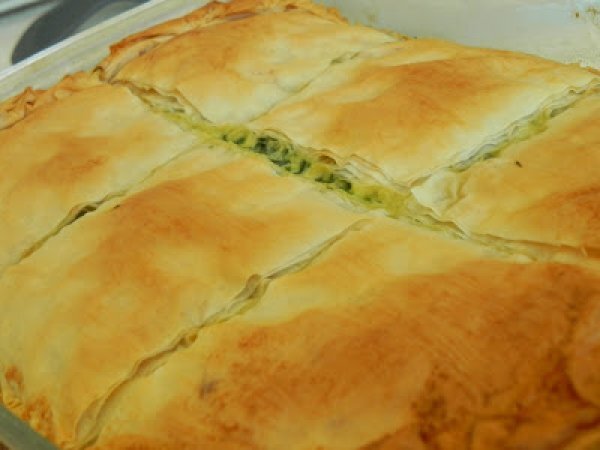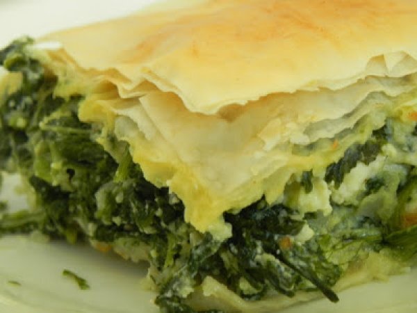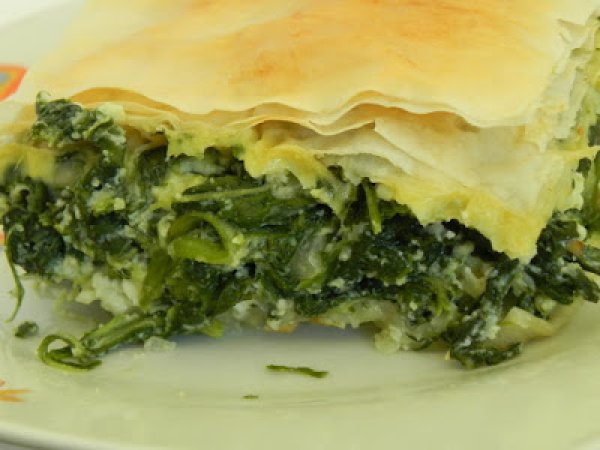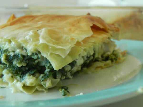 Pastel de espinacas y feta / spanakópita AnteriorSiguiente PlatoFácil1 h 15 m Enviar esta receta a un amigo Imprimir esta página Preguntar al autor Publicar la foto de esta receta Ingredientes 6 unas cucharadas de aceite de oliva 1 cebolla grande picada fina 500 g de espinacas congeladas ya descongeladas 4 cucharadas de perejil fresco picado 2 cucharadas de eneldo fresco picado 3 huevos batidos 200 g de queso feta sal y pimienta 100 g de mantequilla 250 g de pasta filo