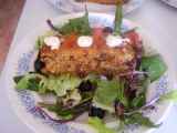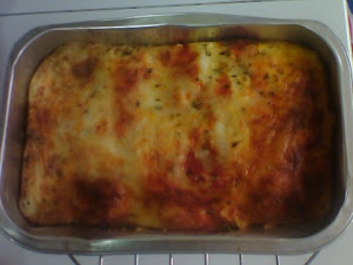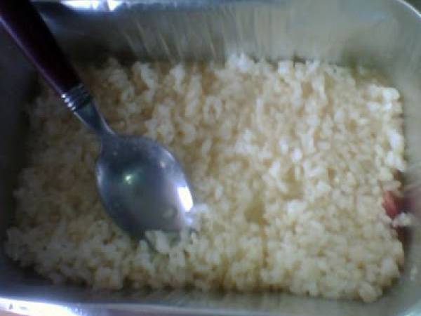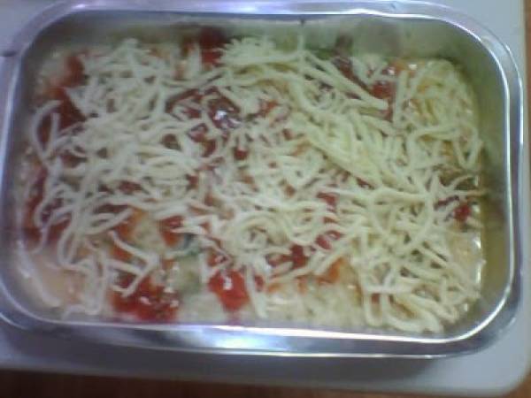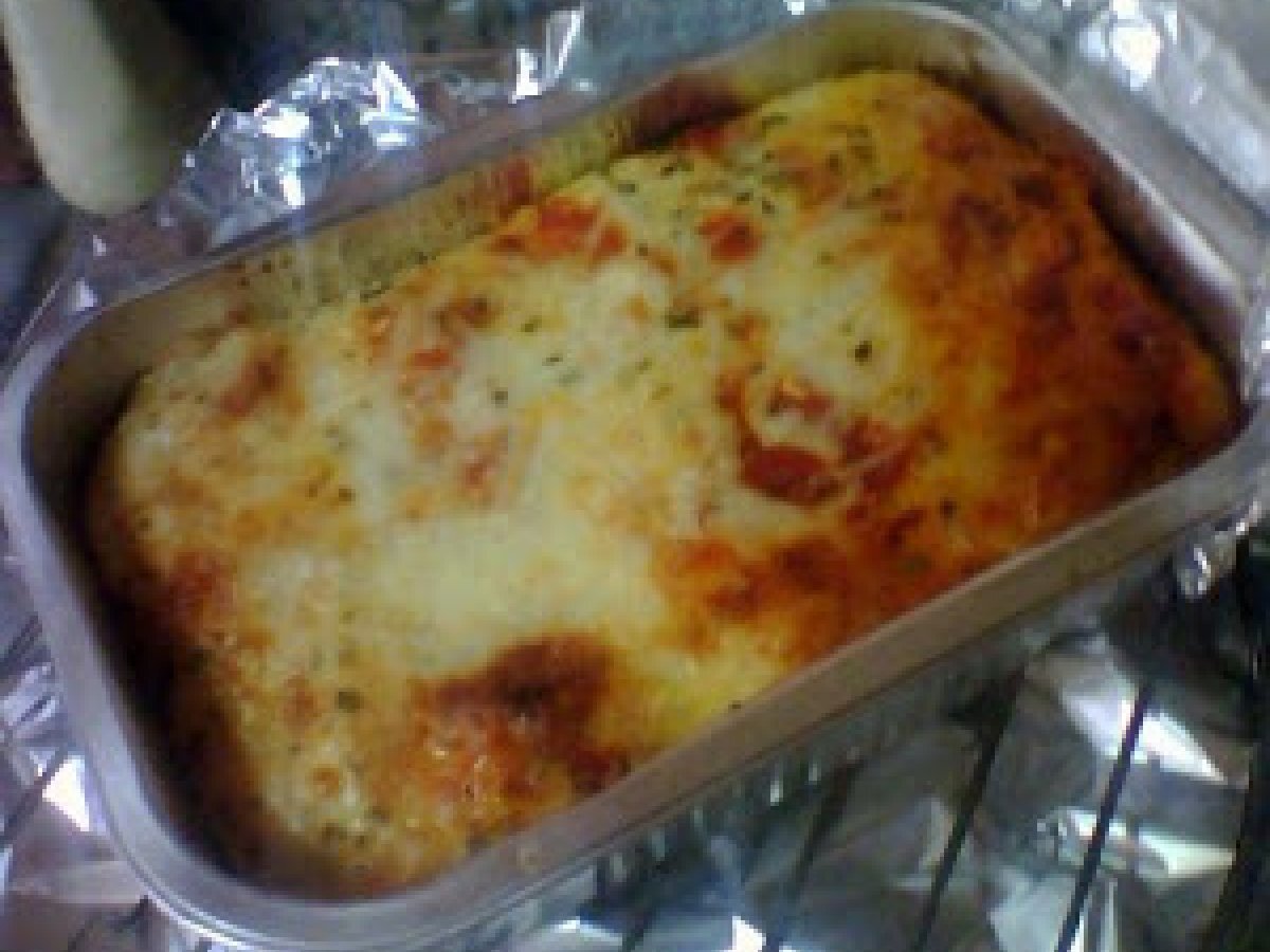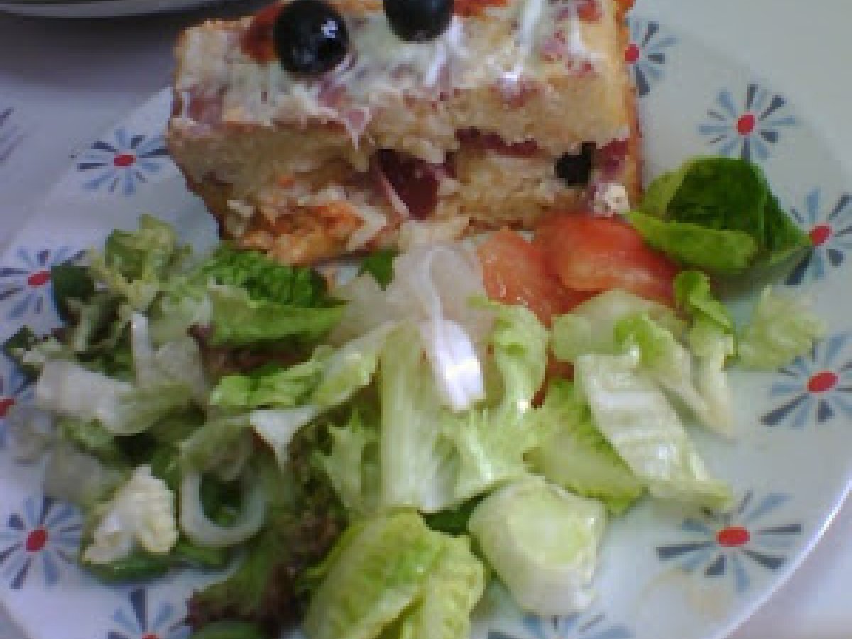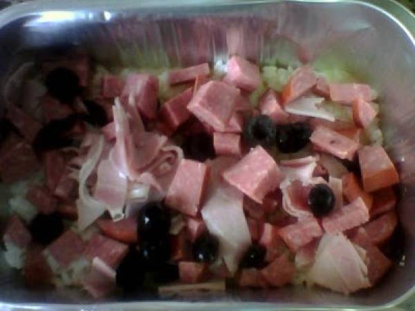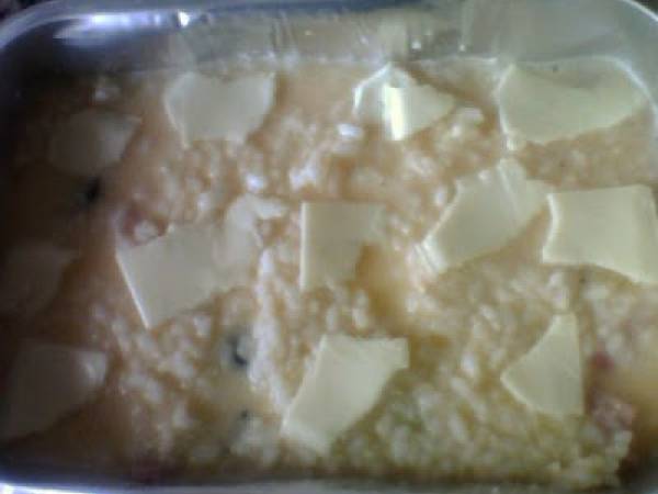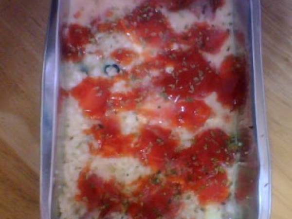 Pastel salado de arroz en el horno de convección