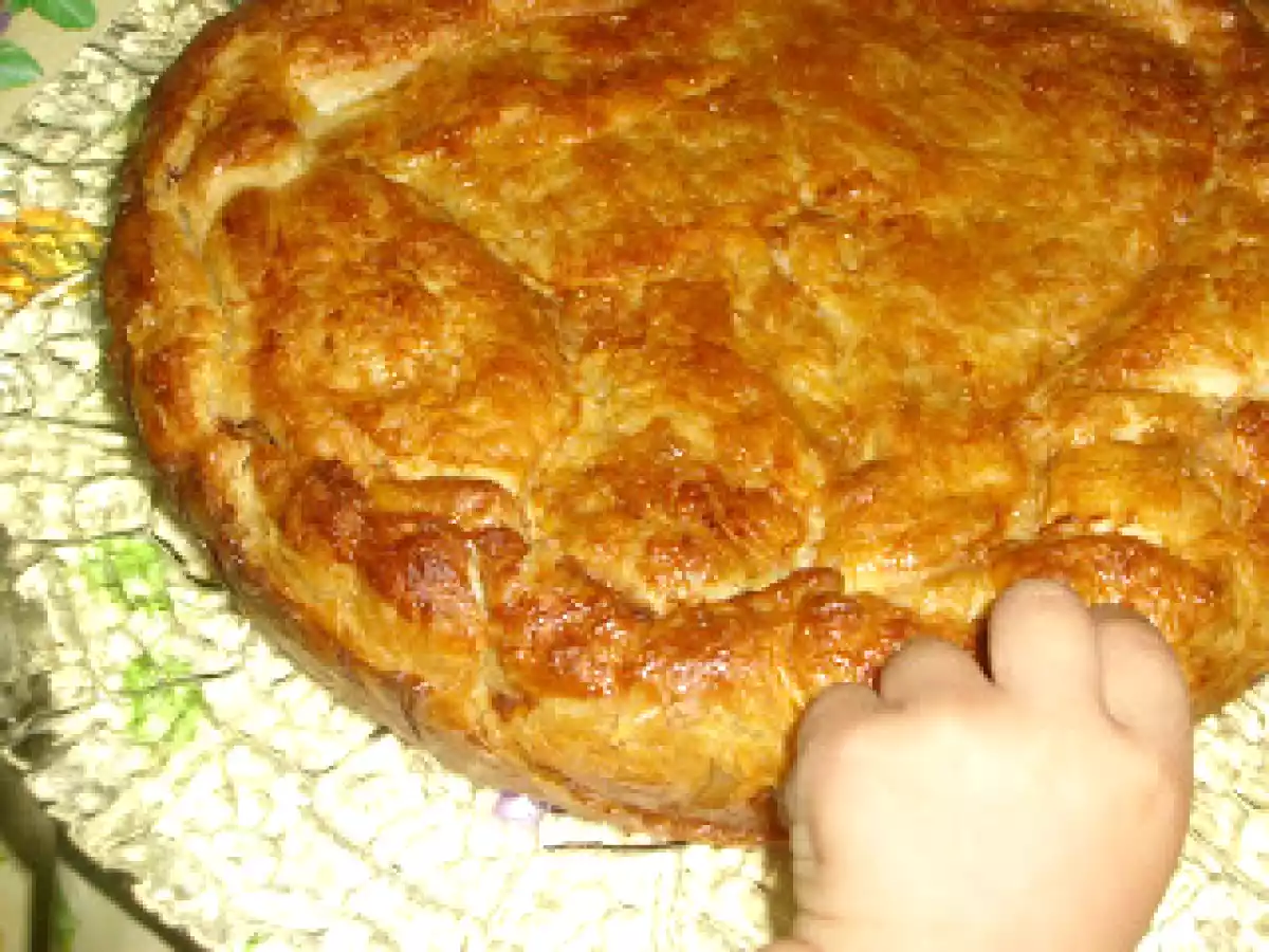 Pastela marroquí de pollo AnteriorSiguiente PlatoFácil50 min1124 Kcal Enviar esta receta a un amigo Imprimir esta página Preguntar al autor Publicar la foto de esta receta Ingredientes 5 3 Pechugas De Pollo Cilantro Perejil 2 Cebollas 1 Cubito De Jengibre 1 Cucharadita De Nuez Moscada Mólida 1 Cucharadita De Canela molida Unas Hebras De Azafrán 1 Cucharada De Azúcar Sal Aceite De Oliva 6 Huevos 200 g De Almendras Crudas Enteras 1 Cucharada De Agua De Azahar 1 Cucharadita De Canela Mólida 2 Cucharadas De Azúcar 2 Láminas De Hojaldre Redondas 100 g De Mantequilla 1 Huevo Azúcar Glass Canela Mólida Costo estimado: 14.05Euros€ (2.81€/porción)