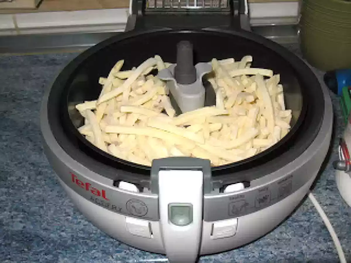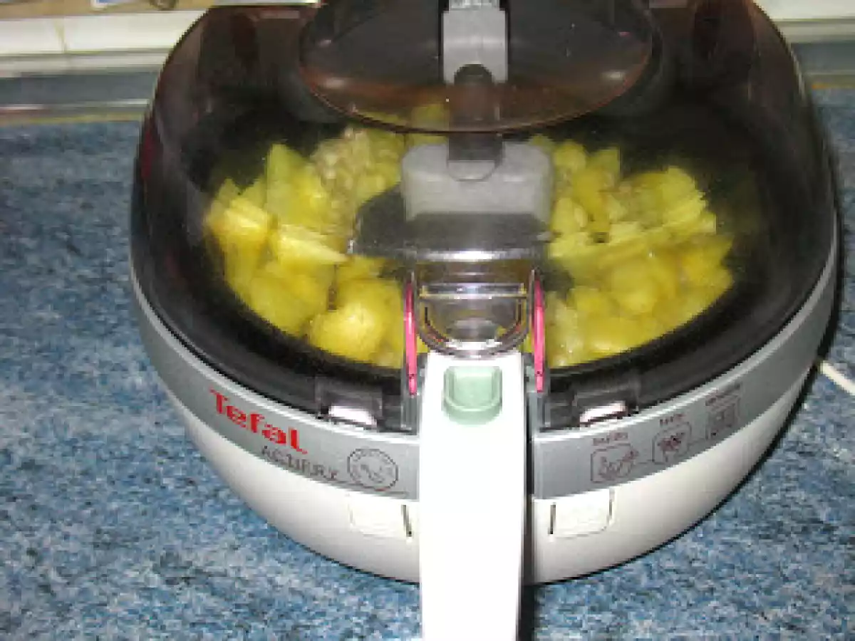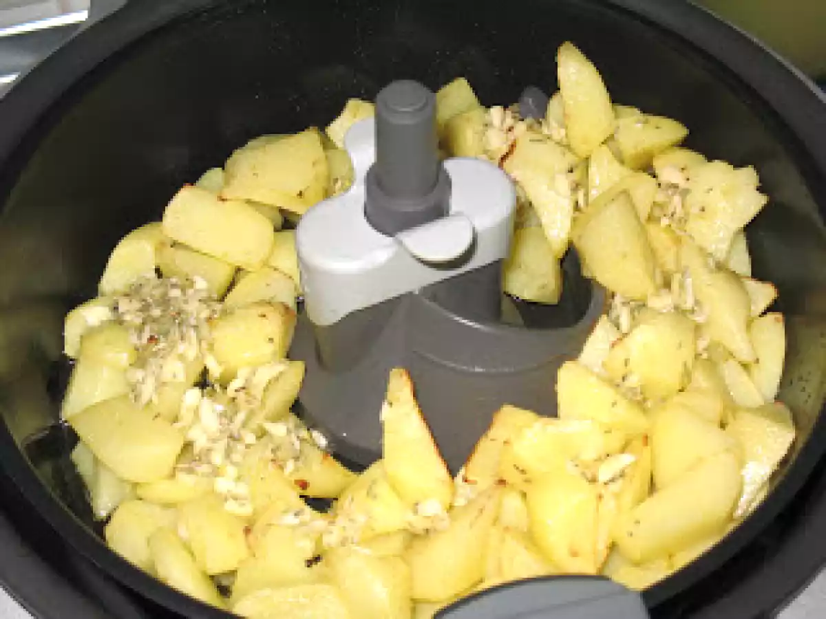 Patatas al aroma de romero en actifry de tefal AnteriorSiguiente PlatoFácil45 min370 Kcal Enviar esta receta a un amigo Imprimir esta página Preguntar al autor Publicar la foto de esta receta Ingredientes 2 4 patatas 3 dientes de ajo picados menuditos Romero aceite de oliva y sal Costo estimado: 1.81Euros€ (0.9€/porción)