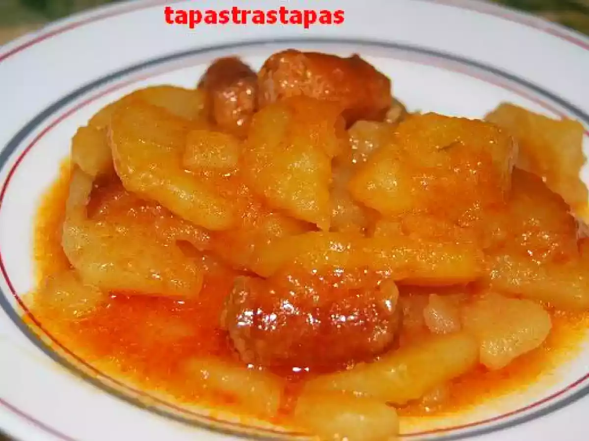Patatas riojanas 'a la navarra' PlatoFácil45 min Enviar esta receta a un amigo Imprimir esta página Preguntar al autor Publicar la foto de esta receta Ingredientes 8 8 patatas Un buen trozo de chistorra Sal y pimienta 2 cucharadas de pimentón dulce 1 l de caldo o de agua Aceite de oliva