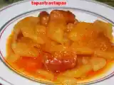 Patatas riojanas con chorizo AnteriorSiguiente PlatoFácil1 hora1372 Kcal Enviar esta receta a un amigo Imprimir esta página Preguntar al autor Publicar la foto de esta receta Ingredientes 2 1 cebolla, 1 pimiento verde 2 dientes de ajo 1 hoja de laurel 1 cucharita de pimentón dulce Guindilla 2 chorizos gallegos y un trozo de chorizo picante de Ávila. Patatas Agua, caldo, sal aceite. Costo estimado: 5.91Euros€ (2.95€/porción)
