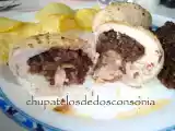 Pechuga de pollo rellena con hojas frescas de espinacas PlatoMedio25 min1885 Kcal Enviar esta receta a un amigo Imprimir esta página Preguntar al autor Publicar la foto de esta receta Ingredientes 2 2 Pechugas de pollo ¼ l. de sofrito de tomate (casero o de bote) 20 hojas de espinacas frescas 2 c/s de cremè fraîche o nata para guisar 1 diente de ajo 1 lata pequeña de champiñón sal de hierbas (tomillo, tomillo limonero, romero y orégano) 1 cebolla roja aceite de oliva sal pimienta 1 vaso de vino blanco 4 granos de pimienta negra 1 grano de pimienta Jamaica Costo estimado: 13.17Euros€ (6.59€/porción)