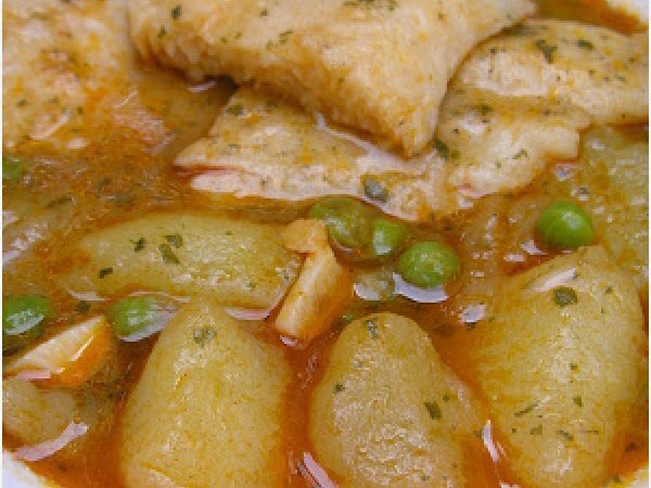 Pescado a la gallega (thermomix) PlatoFácil50 min629 Kcal Enviar esta receta a un amigo Imprimir esta página Preguntar al autor Publicar la foto de esta receta Ingredientes 2 Para el recipiente varoma: 2 filetes de merluza sin piel congelados. Para el vaso: 400gr. de patatas cortadas en trozos grandecitos 1 cebolla 1 hoja de laurel 400gr. de agua 1 pastilla de caldo de pescado 100gr. de guisantes congelados perejil. Para la ajada: 40gr. de ajos fileteados 50gr. de aceite de oliva 2 cucharadas de pimentón dulce. Costo estimado: 6.72Euros€ (3.36€/porción)