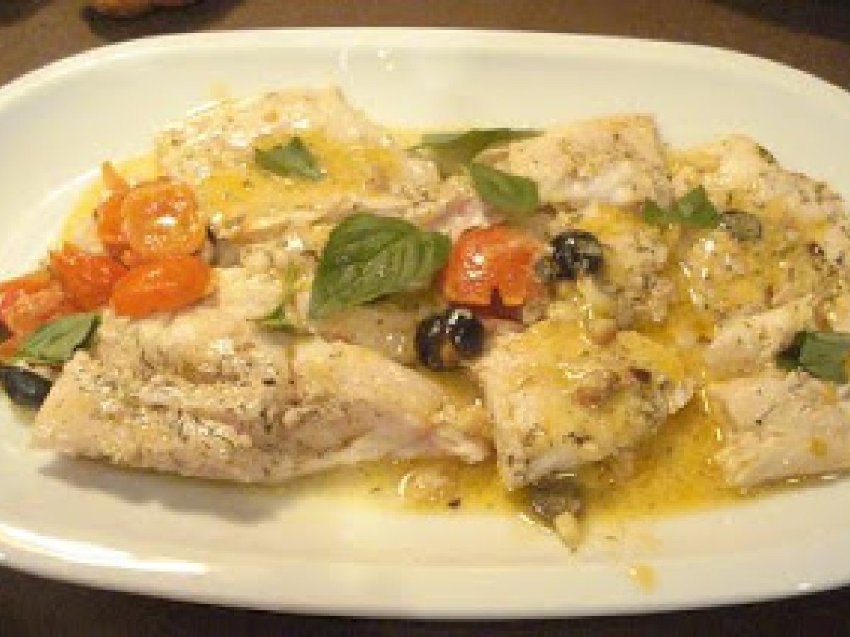 Pesce persico alle erbe aromatiche (filete de perca a las hierbas aromáticas) PlatoFácil50 min205 Kcal Enviar esta receta a un amigo Imprimir esta página Preguntar al autor Publicar la foto de esta receta Ingredientes 2 1 filete de perca, 4 tomates cherry, aceitunas negras, 1 diente de ajo, romero, tomillo, eneldo, albahaca, orégano, aceite, guindilla, limón, vino blanco, sal. Costo estimado: 3.78Euros€ (1.89€/porción)