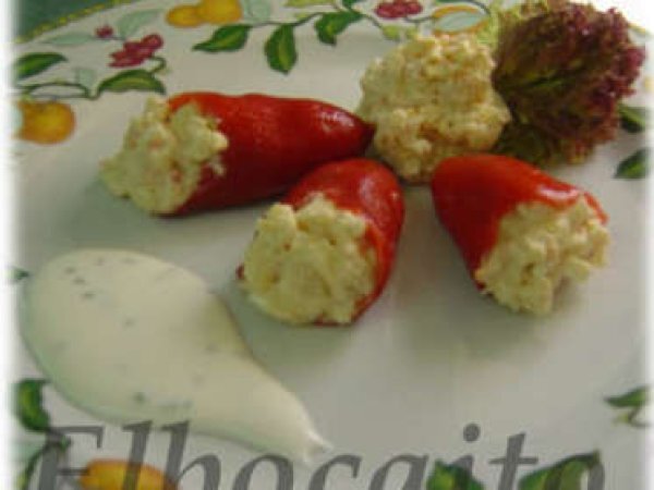 Pimientos del piquillo relleno de ensaladilla de marisco al alio PlatoFácil35 min139 Kcal Enviar esta receta a un amigo Imprimir esta página Preguntar al autor Publicar la foto de esta receta Ingredientes 3 Pimientos del piquillo Huevo cocido Langostinos Palitos de cangrejo Patata Zanahoria Cebolla Ajo Mahonesa Sal