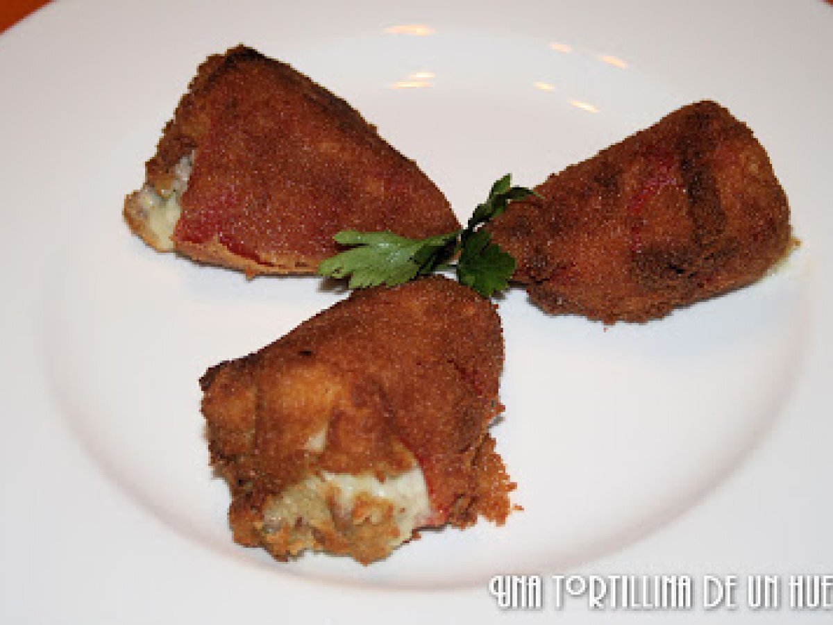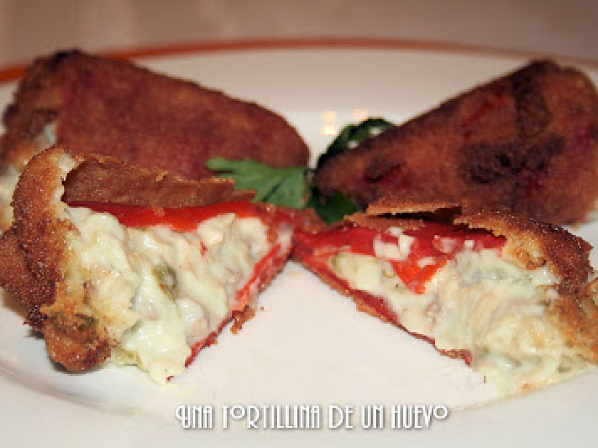 Pimientos del piquillo rellenos de carne rebozados AnteriorSiguiente PlatoFácil30 min1250 Kcal Enviar esta receta a un amigo Imprimir esta página Preguntar al autor Publicar la foto de esta receta Ingredientes 1 1 bote de pimientos del piquillo 125 g de carne picada 1/2 cebolla 1/2 pimiento verde 2 cucharadas colmadas de harina 30 g de mantequilla 2 cucharadas de aceite de oliva 300 ml. de leche aprox. Nuez moscada Huevo y pan rallado para rebozar Costo estimado: 3.14Euros€ (3.14€/porción)