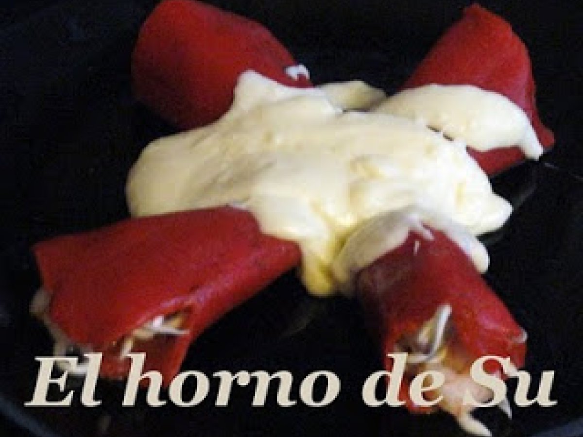 Pimientos del piquillo rellenos de gulas y gambas con isótopo de bechamel PlatoFácil50 min Enviar esta receta a un amigo Imprimir esta página Preguntar al autor Publicar la foto de esta receta Ingredientes 4 un tarro de pimientos del piquillo enteros 1 l de nata media bandeja de gulas del norte 150 g de gambas peladas mantequilla aceite de oliva harina sal y pimienta