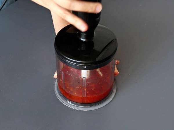 Solo necesitas triturar tomate troceado al natural con aceite de oliva virgen extra, ajo, sal y pimienta para obtener una salsa fresca y sabrosa en pocos minutos.