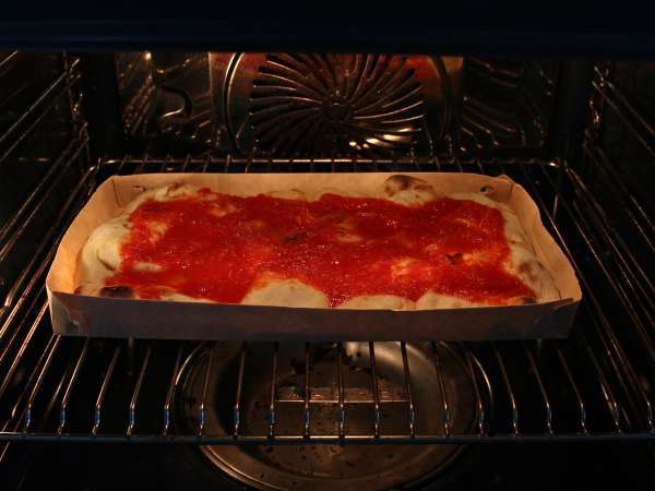 Extiende la salsa sobre la base de pinsa
