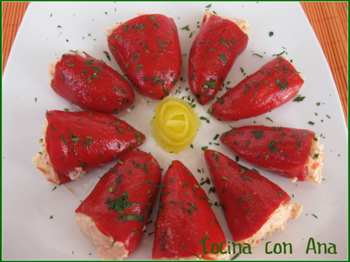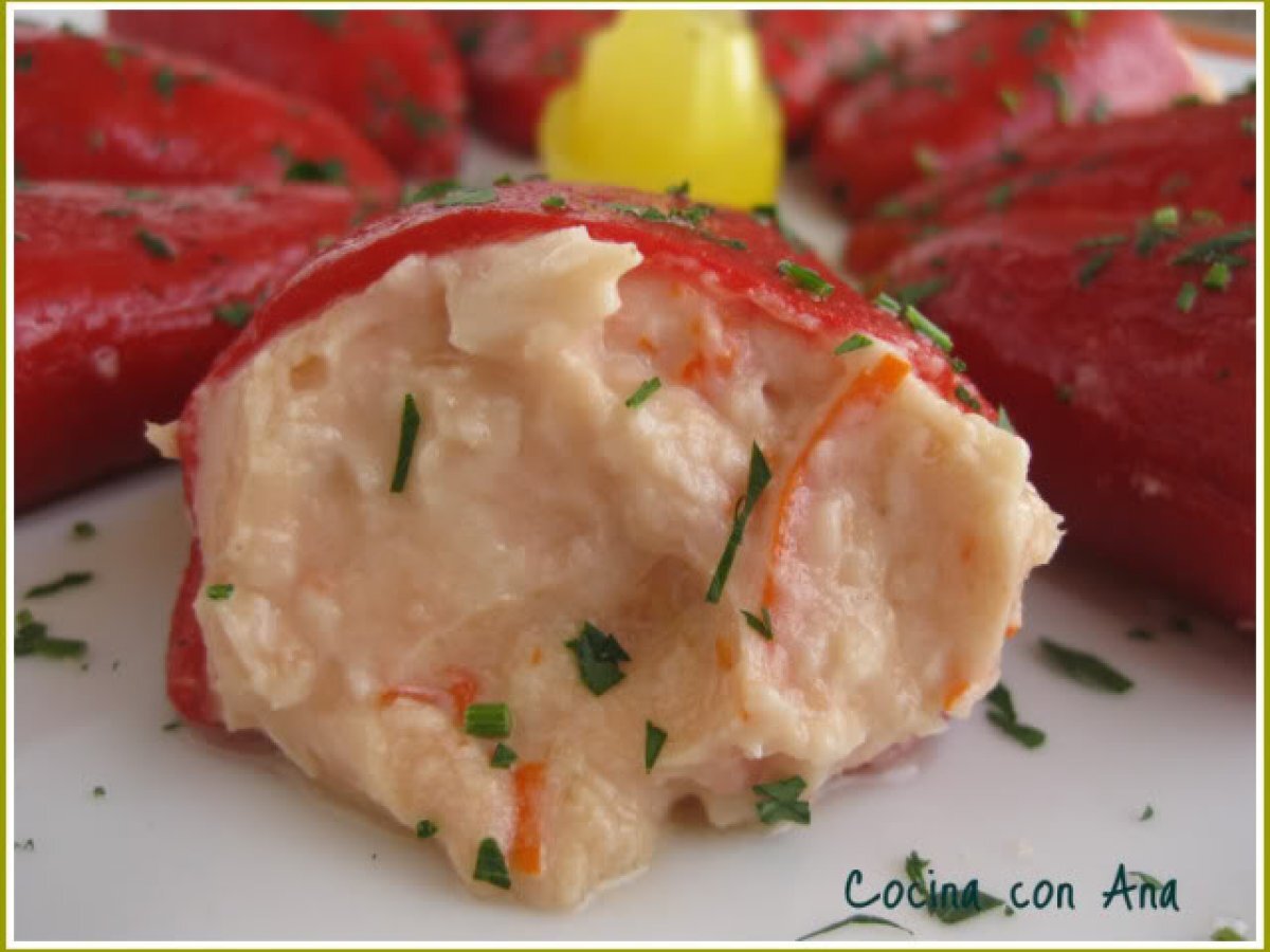 Piquillos rellenos de mousse de mascarpone al salmon