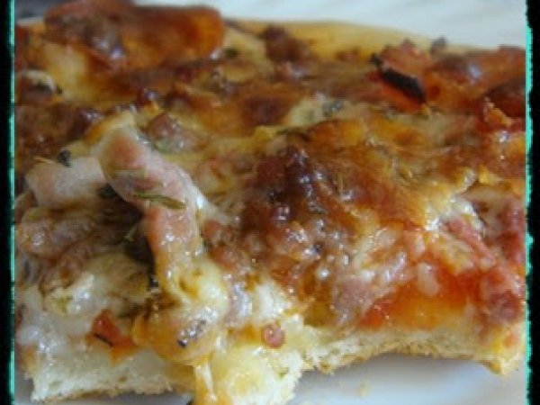 Pizza crujiente "carne lover's" AnteriorSiguiente PlatoFácil45 min Enviar esta receta a un amigo Imprimir esta página Preguntar al autor Publicar la foto de esta receta Con este ingreso se puede decir adiós a la pizzería de a numerado. Ingredientes 4 Para la masa: 180 grs. de agua 50 grs. de aceite 20 grs. de levadura fresca 400 grs. de harina 1 cucharada de sal. 1 cucharada de orégano 1 cucharada de ajo en polvo Para el relleno "Carne lover's": Salsa de tomate al gusto 2 filetes de cerdo 100 grs. de carne picada de ternera. 2 lonchas de jamón york Unas rodajas de pepperoni Queso mozzarella rallado Sal "Hierbas aromáticas de la Provenza" "Especias para pizza" o orégano