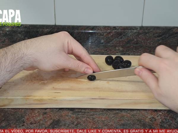 Ahora vamos a hacer la boca a nuestros fantasmas, para ello, cortamos el extremo de la aceituna donde no tiene el agujero. Y se la colocamos a los fantasmas.
