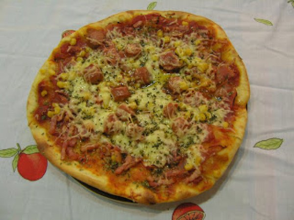 Pizza de frankfurt PlatoFácil55 min Enviar esta receta a un amigo Imprimir esta página Preguntar al autor Publicar la foto de esta receta Ingredientes 3 Masa para pizza refrigerada Tomate frito casero 3 salchichas frankfurt a trozos bacon en tiras jamón dulce a trocitos un poco de maíz dulce Queso rallado emmental Orégano