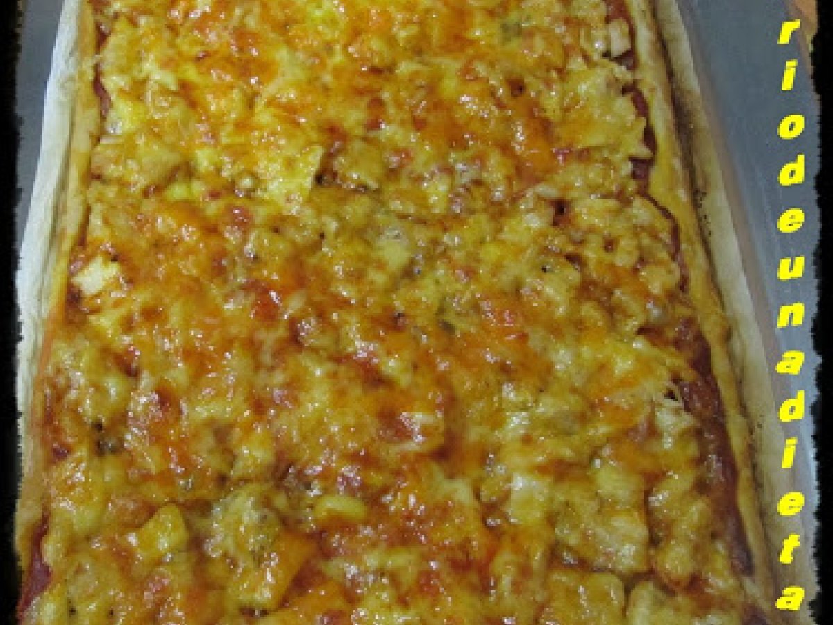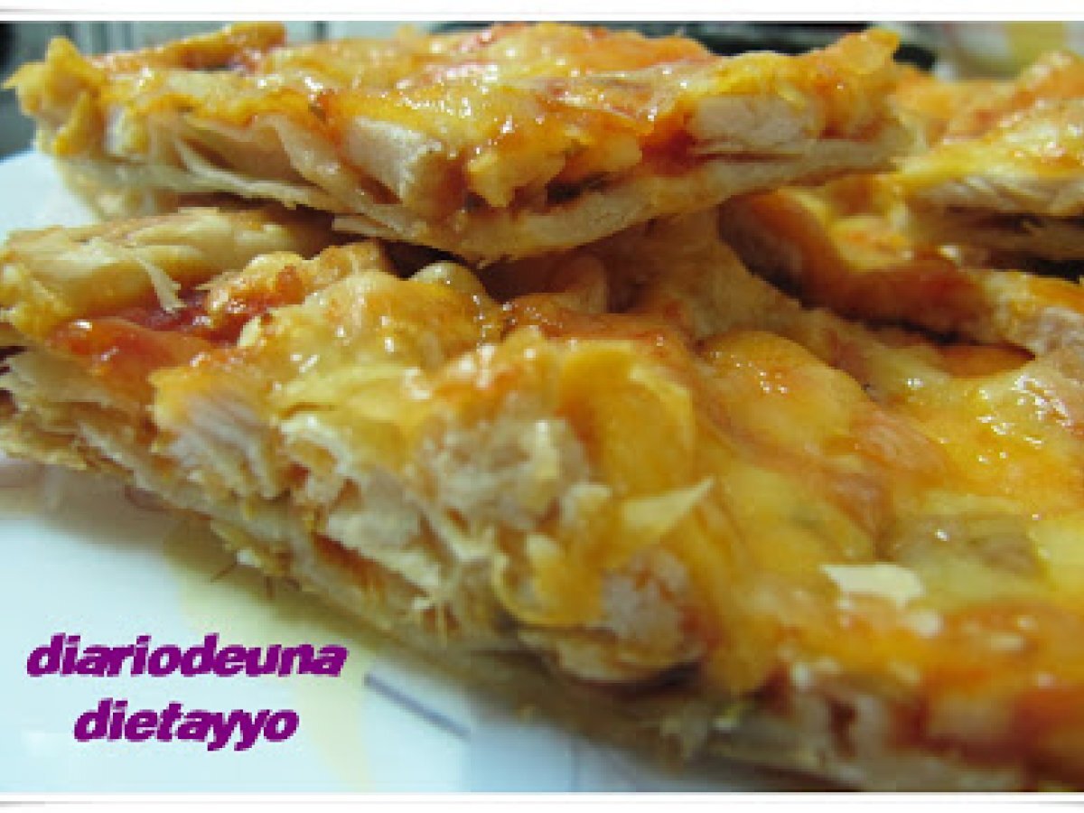 Pizza de hojaldre con pollo AnteriorSiguiente PlatoFácil1 h 10 m483 Kcal Enviar esta receta a un amigo Imprimir esta página Preguntar al autor Publicar la foto de esta receta Ingredientes 3 1 masa de hojaldre 1 bandeja de pechugas de pollo fileteada tomate frito orégano 1 sobre de queso rallado Costo estimado: 2.73Euros€ (0.91€/porción)