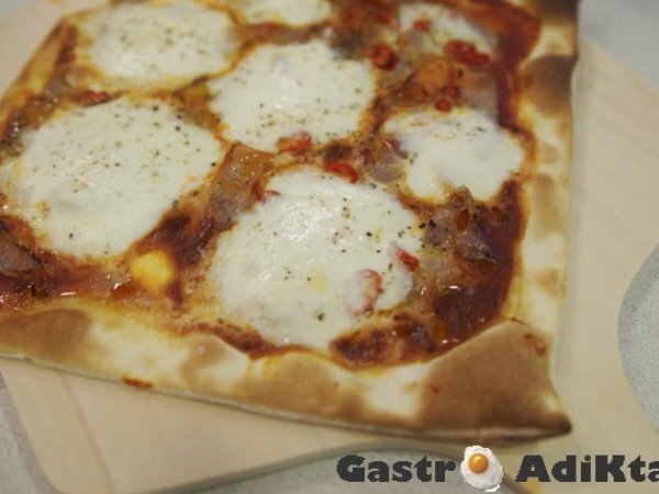 Pizza de panceta ahumada, mozzarella, guindilla fresca y tomate PlatoFácil35 min Enviar esta receta a un amigo Imprimir esta página Preguntar al autor Publicar la foto de esta receta Ingredientes 2 Salsa de tomate: Aceite de oliva virgen extra 1 diente de ajo, pelado y cortado en rodajas finas Un puñado de hojas de albahaca frescas 1 lata de 400 g de tomates pera de buena calidad (si los tenéis naturales, mejor) Sal marina Pimienta negra recién molida Cobertura de pizza (para 1 pizza): 6 c.s. de salsa de tomate 85 g de mozzarella de búfala 1 guindilla roja fresca en rodajas finas Sal mrina Pimienta negra recién molida Aceite de oliva virgen extra