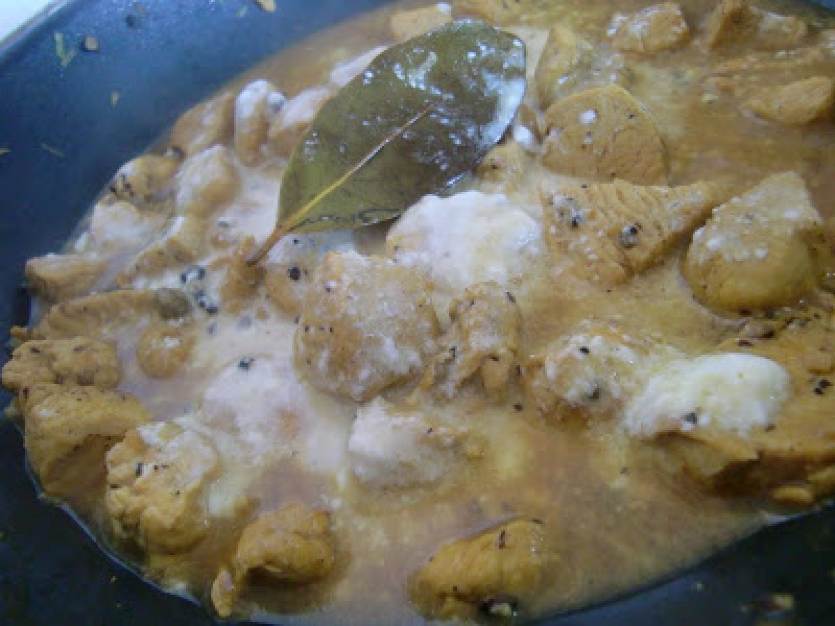 Pollo a la pimienta al estilo del sur de la india vota ahora AnteriorSiguiente PlatoFácil25 min Enviar esta receta a un amigo Imprimir esta página Preguntar al autor Publicar la foto de esta receta Rico y sano. Ingredientes 2 1 ó 2 cucharadas de aceite de girasol, un aceite neutro que no tenga un sabor potente 1 hoja de laurel 4 clavos de olor 1/2 cucharadita de semillas de cardamomo machacadas, con un golpe es suficiente 2 cucharaditas de granos de pimienta negra machacados, pero no molidos 1 cucharadita de jengibre fresco rallado 2 cucharaditas de ajo rallado fino 625 g de pechugas de pollo en trozos pequeños 150 ml de agua (quedó bien con agua pero puedes usar un caldo de ave) 1/2 cucharadita de cúrcuma 350 ml de yogur natural descremado sal