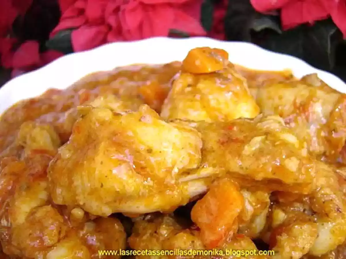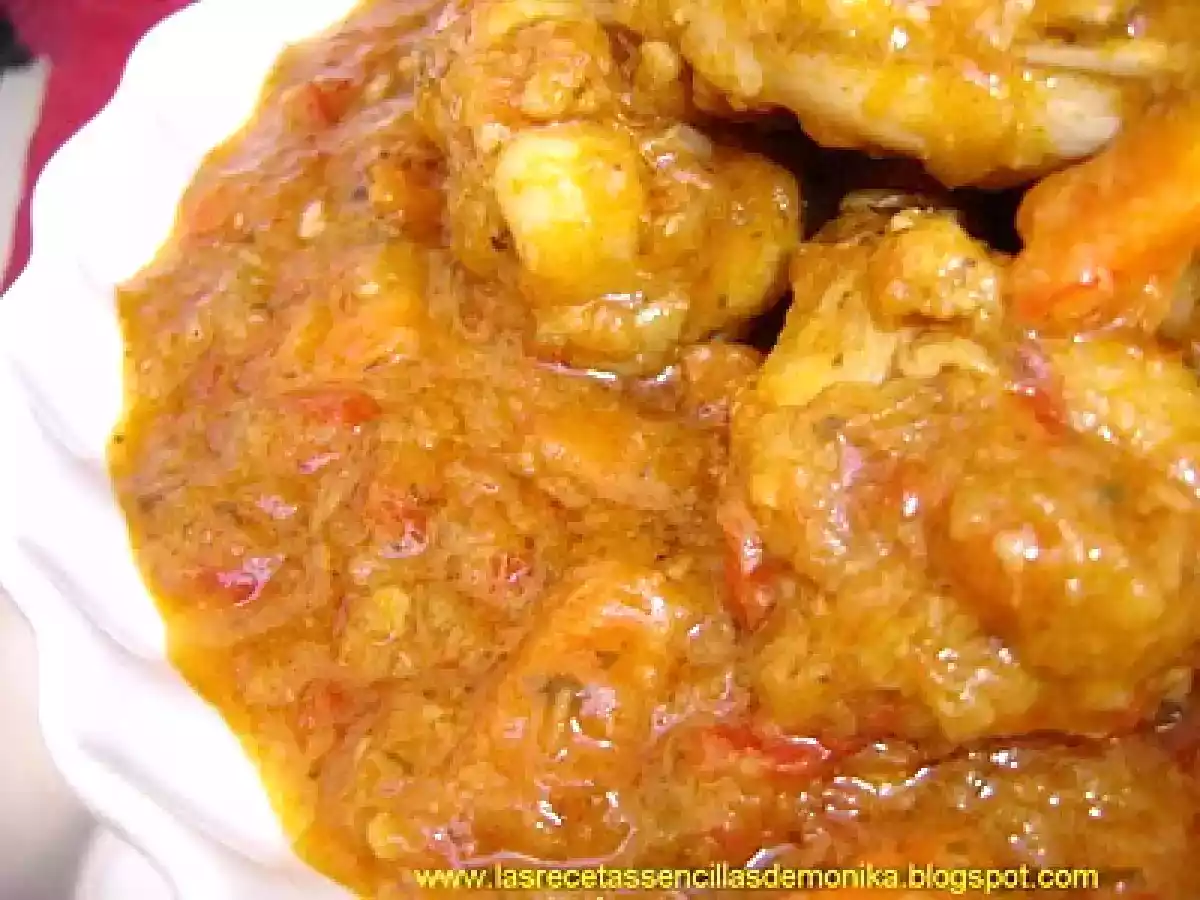 Pollo al chilindrón AnteriorSiguiente PlatoFácil45 min861 Kcal Enviar esta receta a un amigo Imprimir esta página Preguntar al autor Publicar la foto de esta receta Ingredientes 3 50 g de aceite de oliva 3 dientes de ajo 150 g de cebolla 180 g de pimientos 50 g de vino blanco 1 kg de muslitos de pollo zanahoria en taquitos 150 g de agua 150 g de tomate frito Pimienta y sal al gusto Costo estimado: 7.16Euros€ (2.39€/porción)
