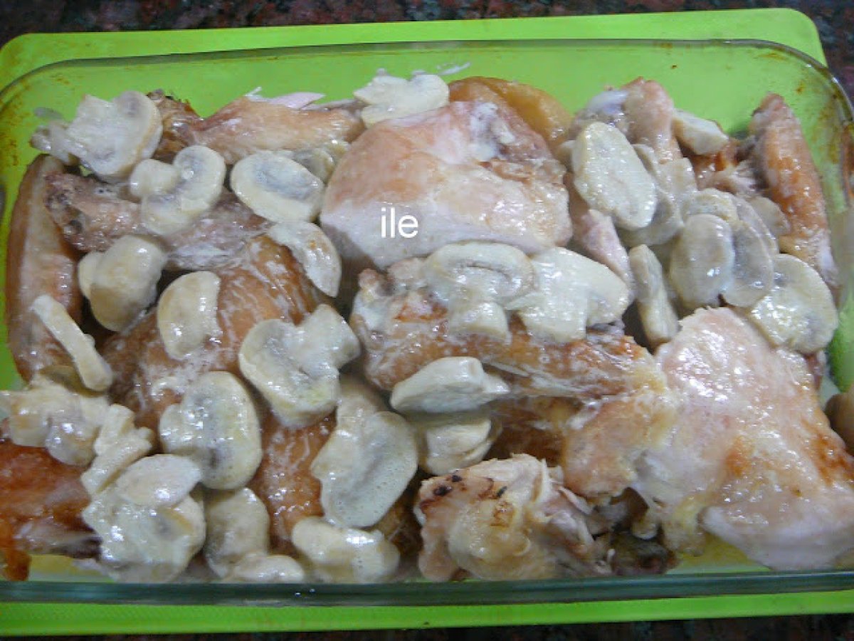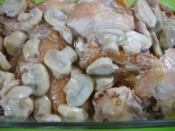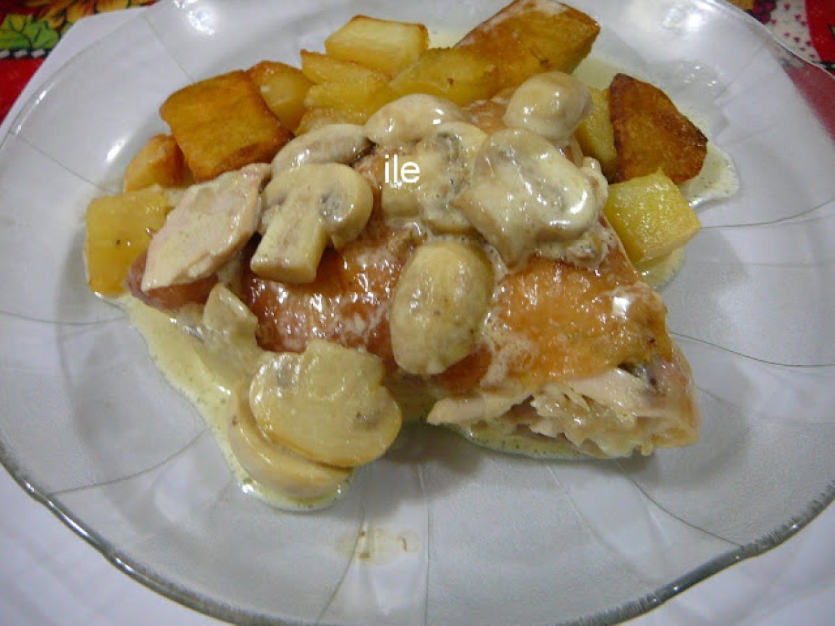 Pollo al horno con crema de champiñones AnteriorSiguiente PlatoFácil30 min Enviar esta receta a un amigo Imprimir esta página Preguntar al autor Publicar la foto de esta receta Ingredientes 4 Cuartos de pollo 1 por persona 300 cc de crema de leche o nata (puede ser un poco más) 250 g de champiñons sal y pimienta a guto 50 g de manteca 1 kg de sal gruesa GUARNICION: papas o patatas batatas, camote o boniatos aceite cantidad necesaria