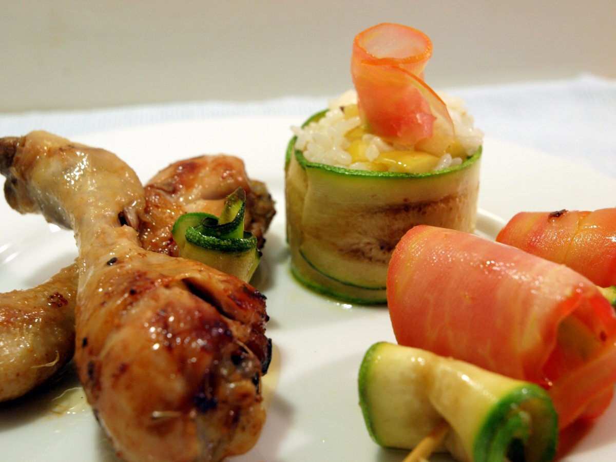 Pollo al romero con arroz , manzana y verduras AnteriorSiguiente PlatoMedio55 min Enviar esta receta a un amigo Imprimir esta página Preguntar al autor Publicar la foto de esta receta Ingredientes 2 Ingredientes para 4 personas 1 pollo de granja 2 ramitas de romero 1 cabeza de ajos 2 hojas de laurel pimienta blanca 200 gramos de arroz 2 calabacines 2 manzanas 2 cebolletas tiernas 1 nuez de mantequilla sal, aceite,