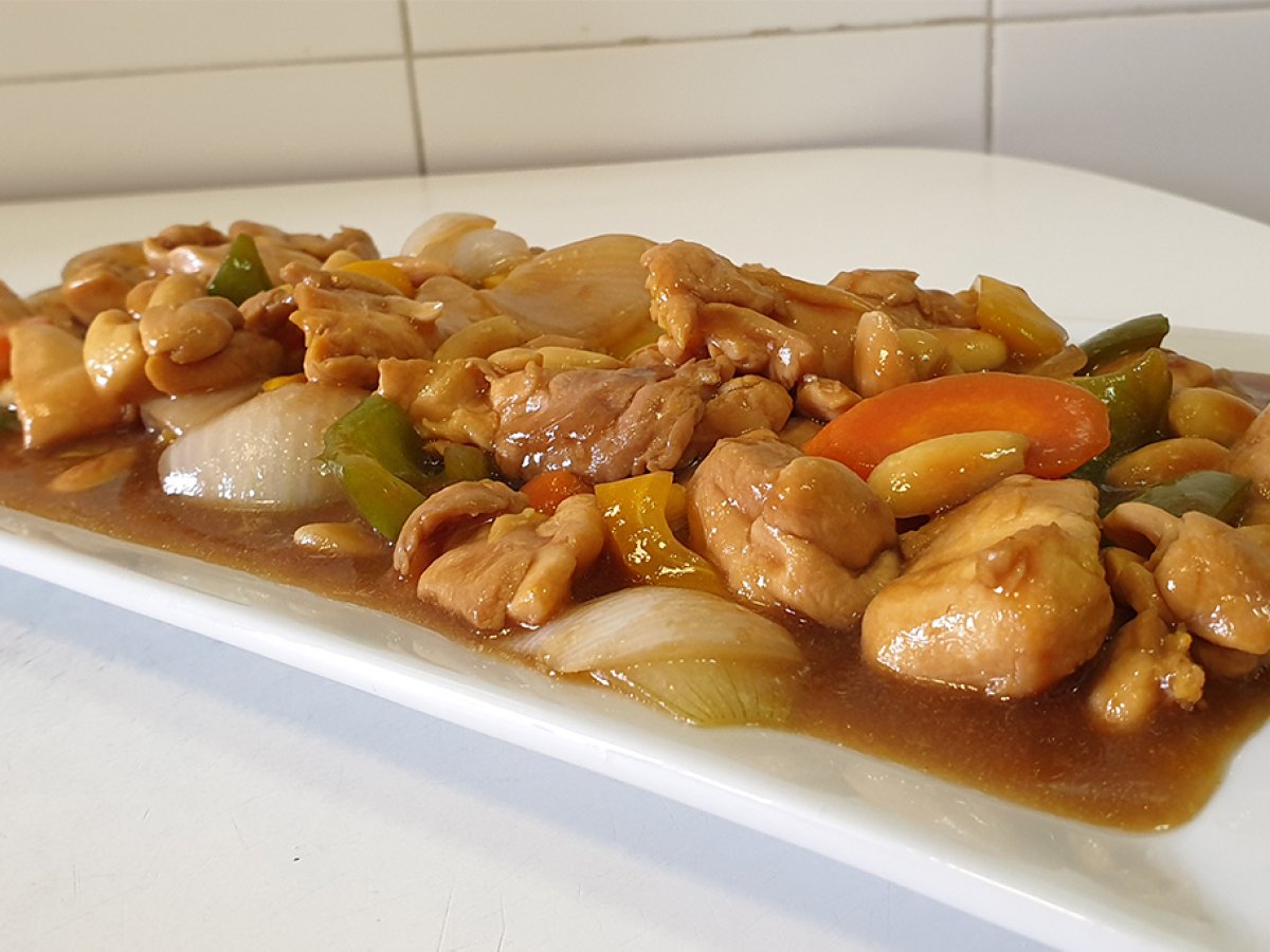 Pollo con almendras al estilo chino