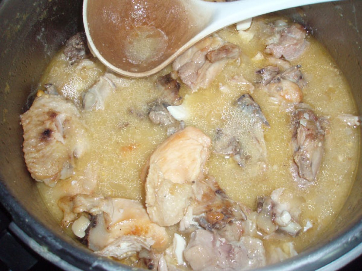 Pollo con almendras estilo domingo PlatoMedio1 h 30 m Enviar esta receta a un amigo Imprimir esta página Preguntar al autor Publicar la foto de esta receta Ingredientes 3 1 Pollo de 1,5 a 2,5 kilos 1 Cebolla 1 puñado de almendras 1 vaso de vino blanco o 3/4 de jerez 1 o 2 huevos 1,5 cucharadas soperas de harina sal 1 litro de agua