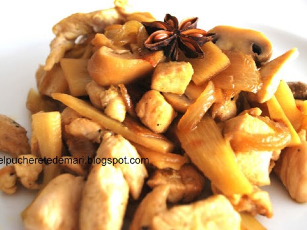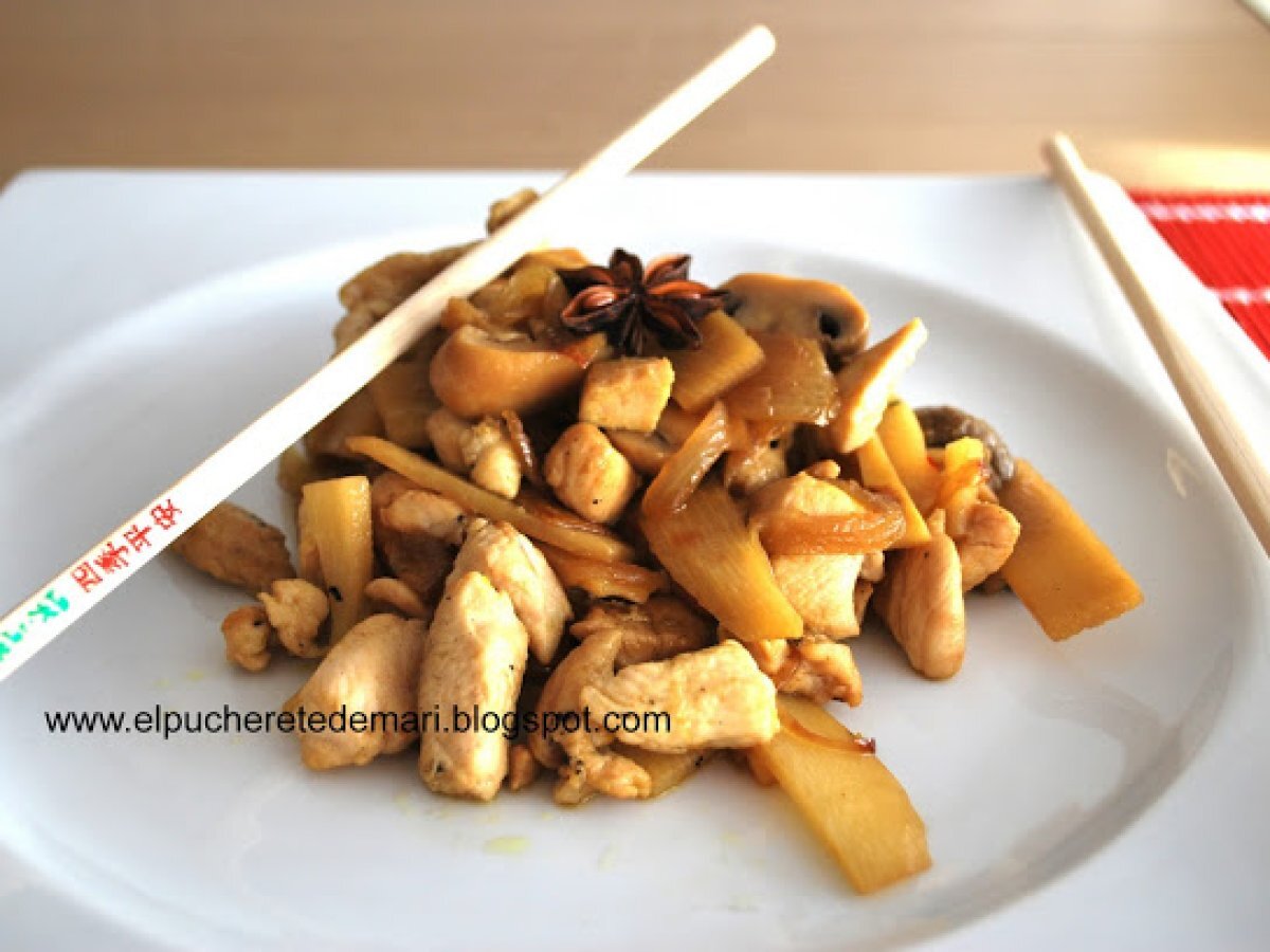 Pollo con bambú y nasi goreng AnteriorSiguiente PlatoFácil45 min Enviar esta receta a un amigo Imprimir esta página Preguntar al autor Publicar la foto de esta receta No te pierdas esta deliciosa manera de cocinar el pollo con bambú. Ingredientes 4 2 pechugas de pollo grandes 1 lata de champiñones enteros 1/2 bote de bambú 1 cebolla pequeña Aceite de oliva virgen Sal Salsa de soja 1 cucharada sopera de preparado para Nari Goreng