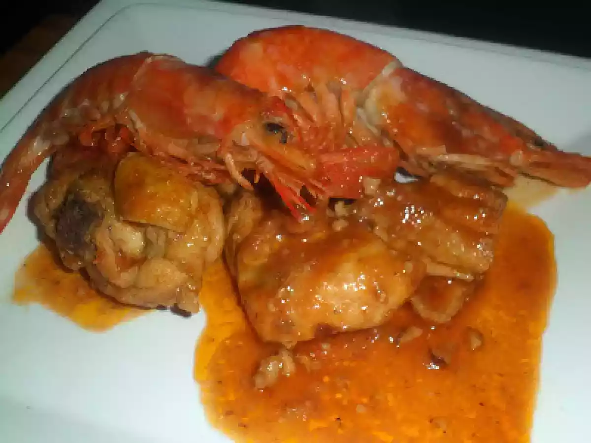 Pollo con gambas ( mar y montaña )