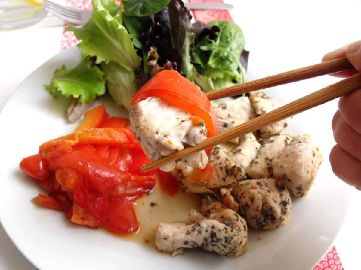 Pollo con pimientos bajo en calorias PlatoFácil1 hora Enviar esta receta a un amigo Imprimir esta página Preguntar al autor Publicar la foto de esta receta Ingredientes 4 2 pechugas de pollo 2 pimientos rojos 1 cucharada de albahaca seca El zumo de dos limones Sal y pimienta 1 bolsa de asar