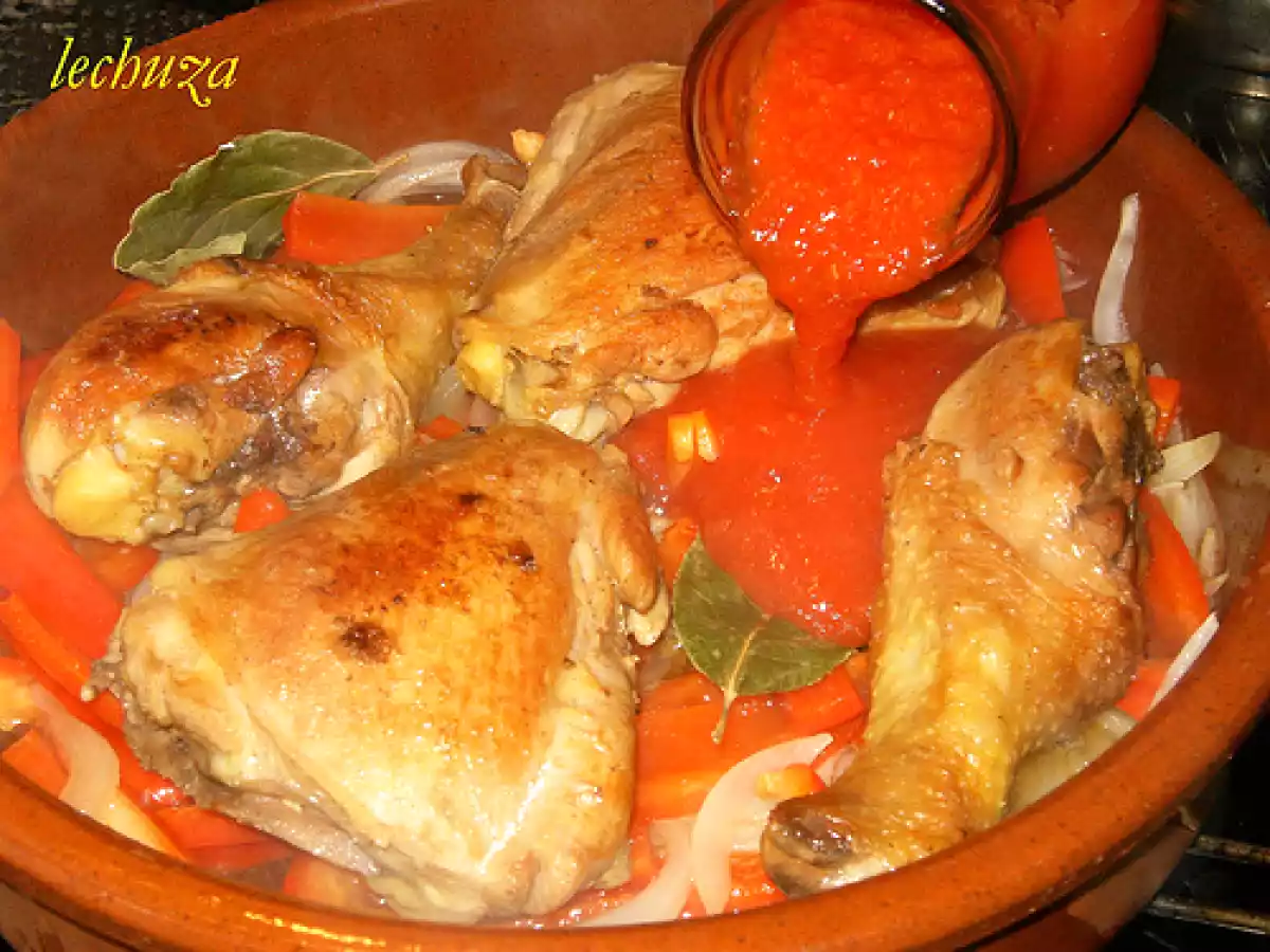 El pollo al chilindrón es un plato festivo muy típico en zona de Aragón( Zaragoza, Huesca y Teruel). A pesar de ésto, es un plato muy conocido en el resto del país. Se elabora normalmente con pollo, pero tambien se puede hacer con pescado, con bacalao concretamente y queda delicioso. Esta receta la encontré en ése libro y la verdad es que nos encanta. Hice alguna modificación, pues no soy capaz de hacer una receta al pie de la letra, siempre tengo que ponerle o quitarle cosillas para hacerla más "mía". Espero que os guste.