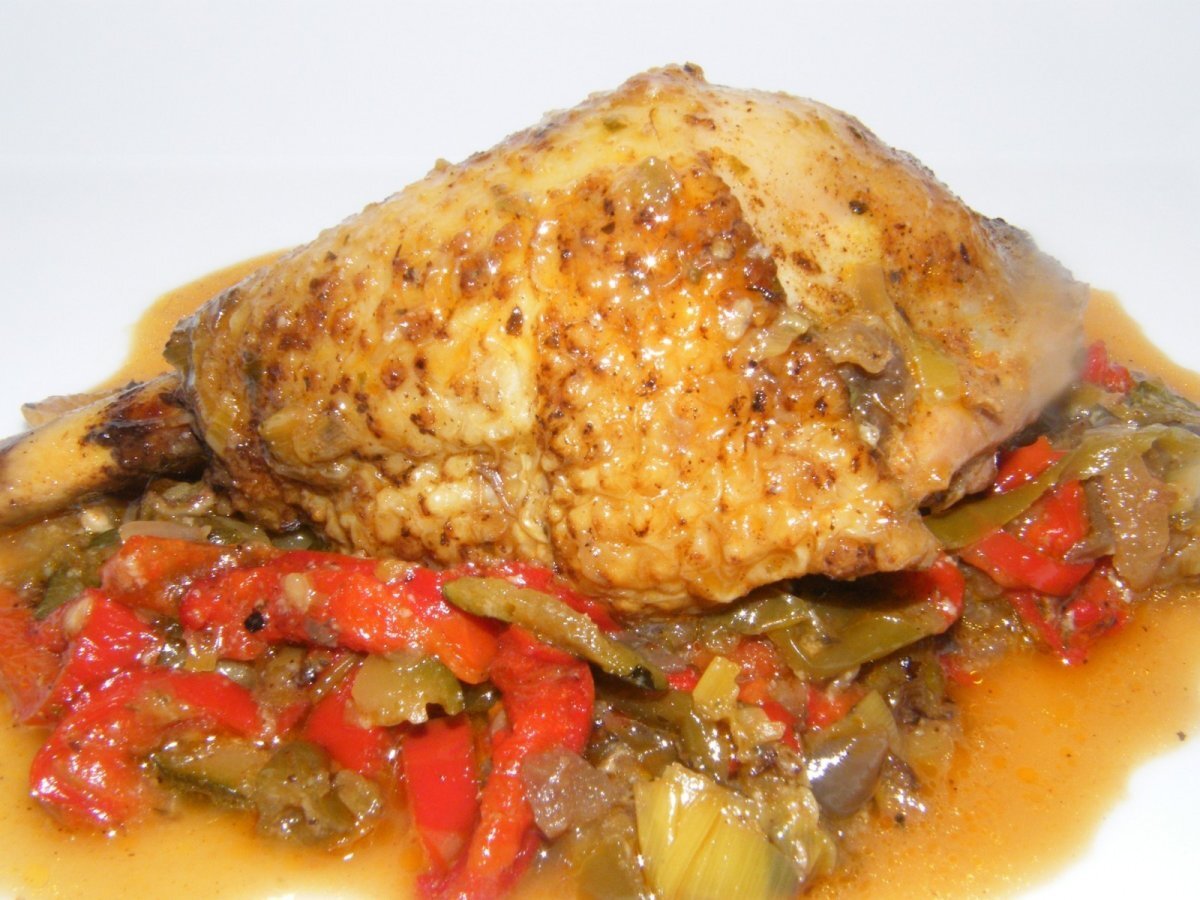 Pollo de corral al estilo cajún PlatoMedio55 min Enviar esta receta a un amigo Imprimir esta página Preguntar al autor Publicar la foto de esta receta Ingredientes 2 INGREDIENTES: 4 cuartos traseros de pollo cortados en dos piezas, 2 cucharadas de especias Cajún ,1/2 cucharadita de albahaca seca, 1 c/postre de pimentón dulce, ½ calabacin, 1 cebolla, 1 pimiento verde, ½ puerro, 1 pimiento rojo, ½ guindilla roja, 1 chorro de vino blanco, caldo de pollo, 1 yogur o cremè fraîche o nata.