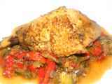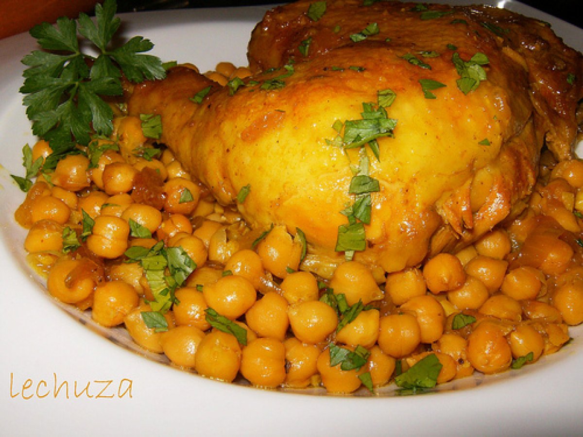 Pollo de corral con garbanzos especiados PlatoFácil55 min816 Kcal Enviar esta receta a un amigo Imprimir esta página Preguntar al autor Publicar la foto de esta receta Ingredientes 2 1 cuarto de pollo casero 200 g de garbanzos cocidos 1 cebolla 2 dientes de ajo 1/2 botellín de cerveza Estrella Galicia azafrán en polvo 1/2 cucharadita de curry 1/2 cucharadita de ras el hanout perejil aceite sal Costo estimado: 6.78Euros€ (3.39€/porción)