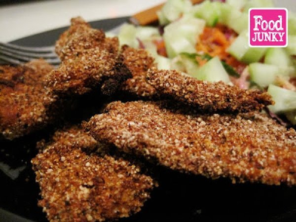 Prepara estas deliciosas y crujientes pechugas de pollo. La clave está en el rebozado especiado que le da un sabor inigualable. Además resultan más saludables que las fritas pues las hacemos al horno! Buen provecho!