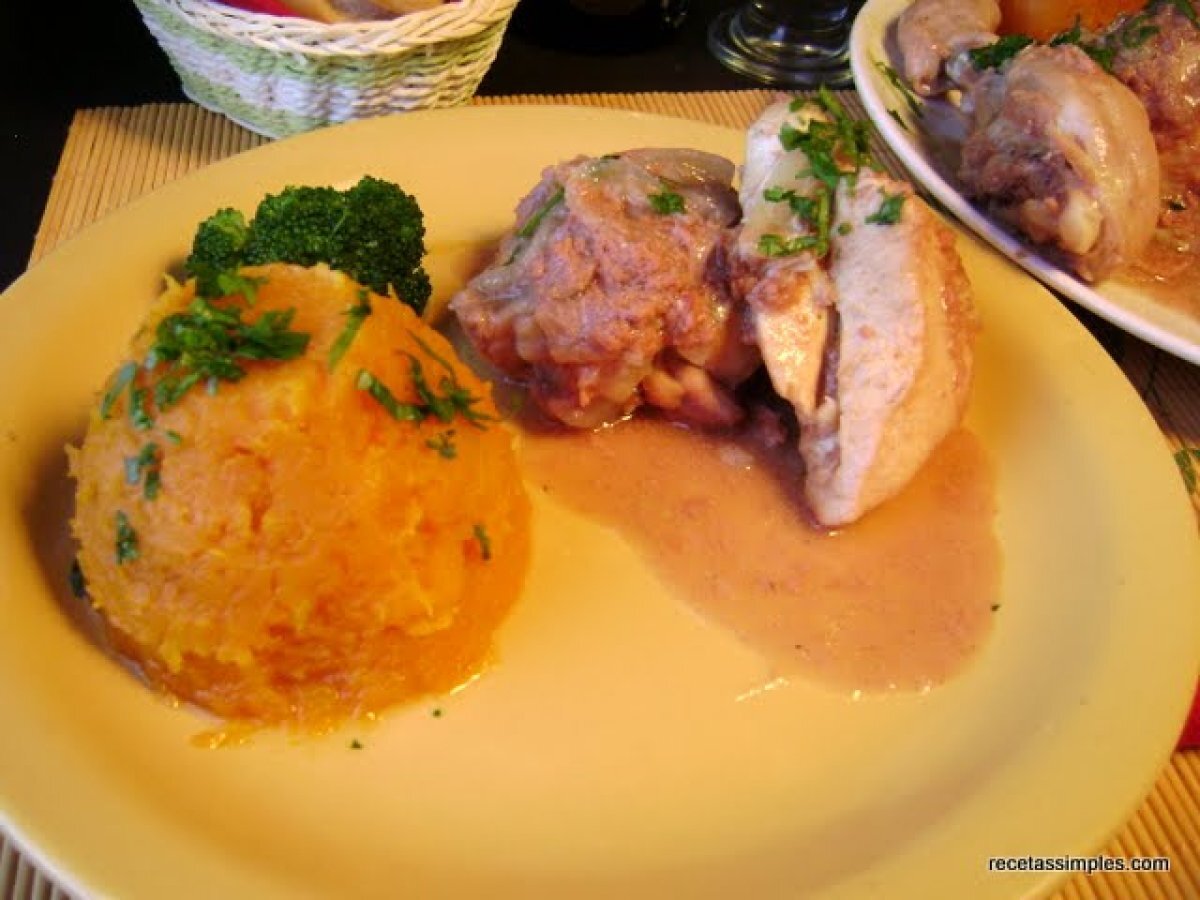 Pollo en salsa leber PlatoFácil1 h 15 m Enviar esta receta a un amigo Imprimir esta página Preguntar al autor Publicar la foto de esta receta Ingredientes 4 8 presas de pollo 2 cebollas 250 cc de caldo 100 g de mayonesa 1 vaso de vino blanco 200 g de leberwurst pimienta sal
