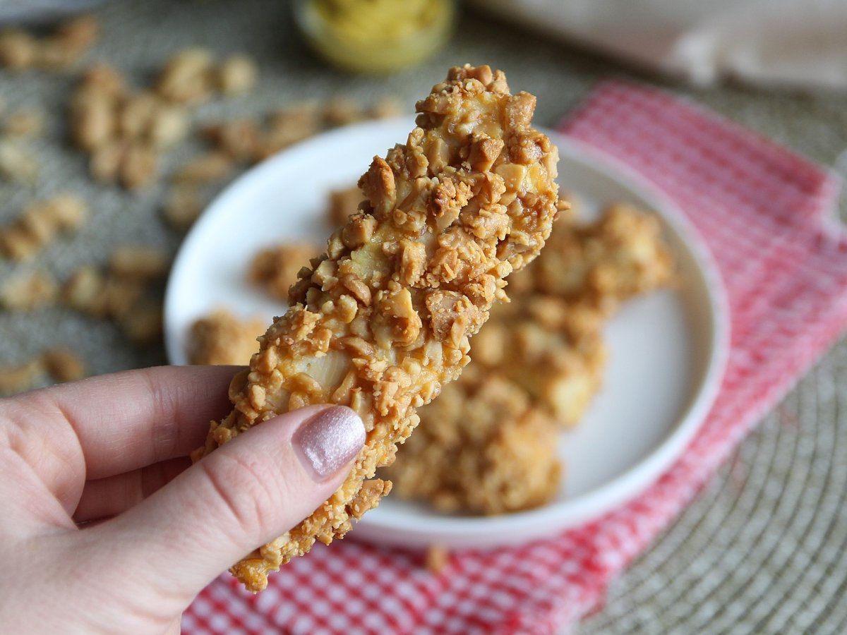 La próxima vez que vayas a hacer pollo empanado ¿qué te parecería sustituir el clásico pan rallado por cacahuetes triturados?! Una alternativa fácil, original y mucho más saludable de disfrutar nuestro pollo rebozado. No dudes en aportar un extra de sabor acompañando tus tiras de pollo con alguna salsa tipo barbacoa, mostaza o kétchup para multiplicar el placer. Ah, por cierto, casi se nos olvida decirte que, para hacer esta receta, sólo vas a necesitar 3 ingredientes. Esta vez, no hay excusa posible para no regalarse esta delicia la hora del almuerzo o el picoteo.