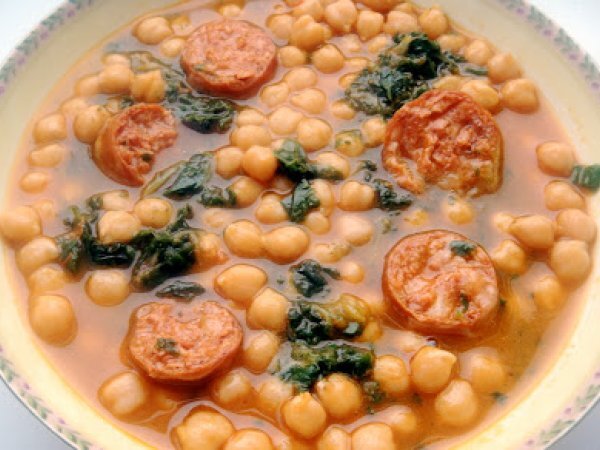 Potaje de garbanzos, acelgas y chorizo AnteriorSiguiente PlatoFácil50 min611 Kcal Enviar esta receta a un amigo Imprimir esta página Preguntar al autor Publicar la foto de esta receta Ingredientes 3 500 g de garbanzos crudos ecológicos El Hostal 300 g de acelgas congeladas 1 pimiento rojo 1 pimiento verde 1 tomate media cabeza de ajos chorizos laurel sal y pimienta caldo de ave o agua 1 cucharadita de bicarbonato Costo estimado: 5.31Euros€ (1.77€/porción)