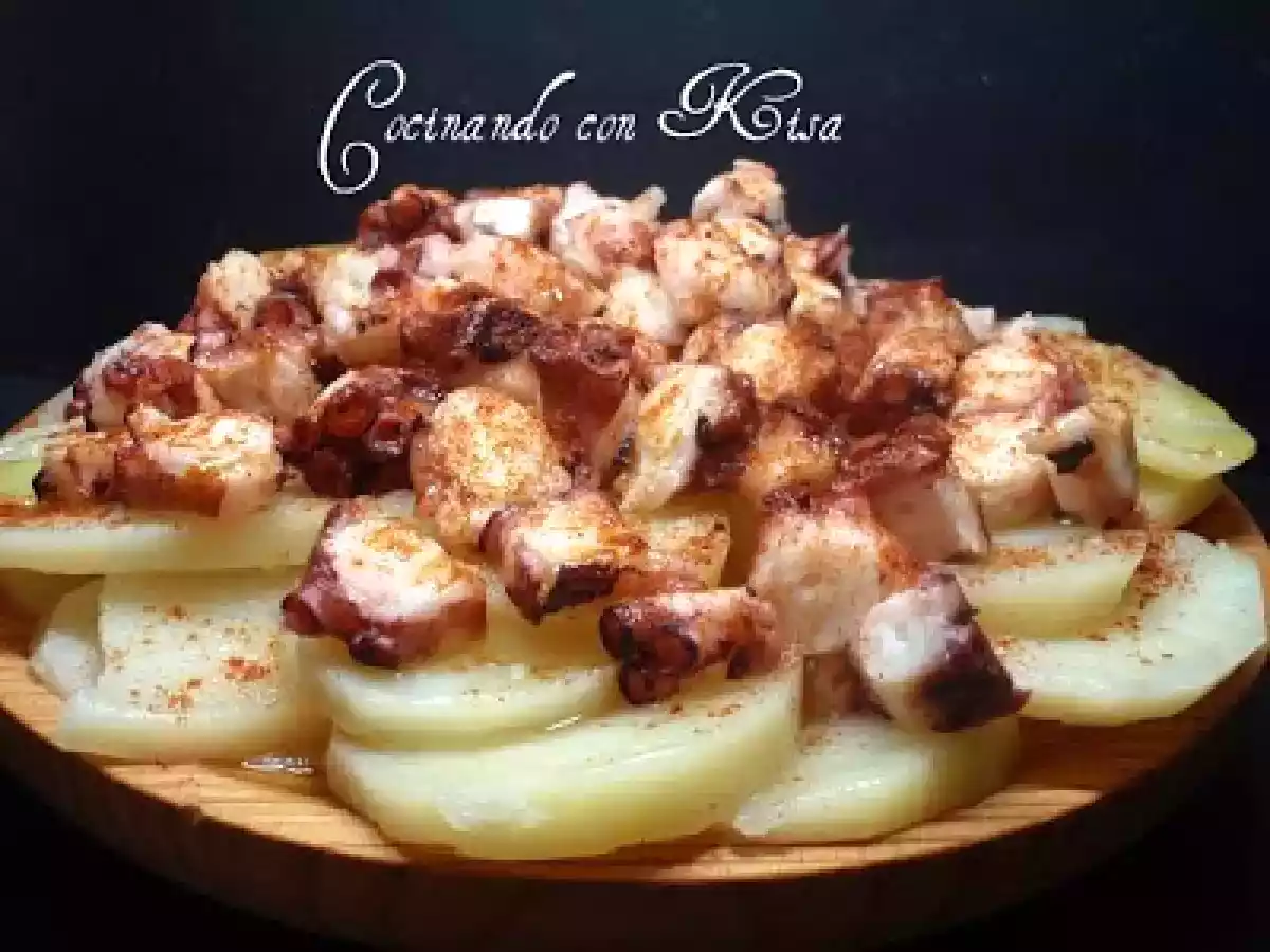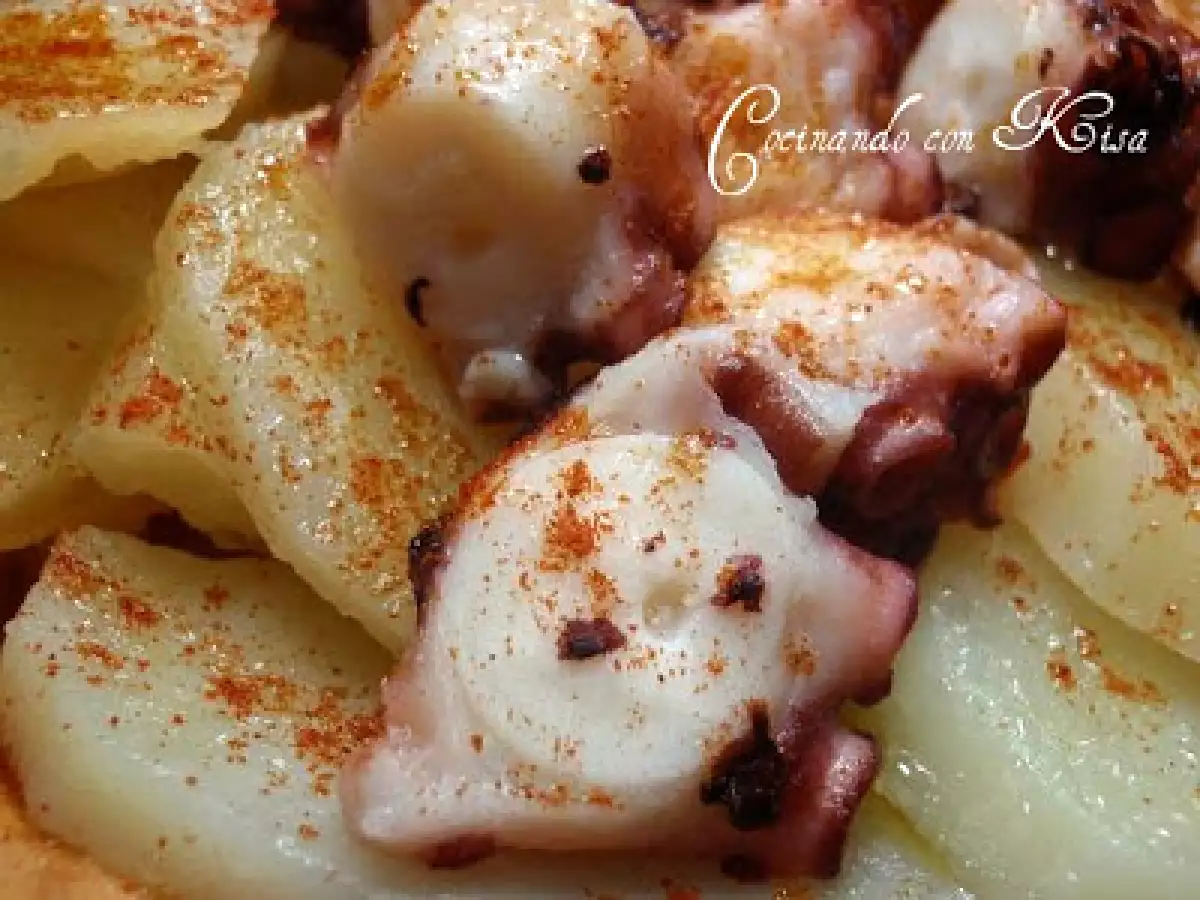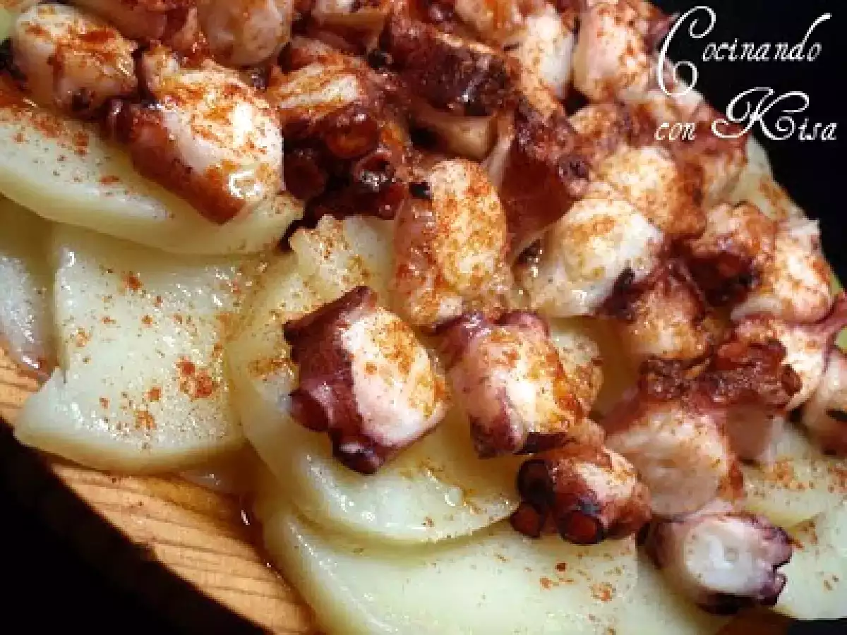 Pulpo a la gallega con cachelos vota ahora AnteriorSiguiente PlatoFácil40 min Enviar esta receta a un amigo Imprimir esta página Preguntar al autor Publicar la foto de esta receta Ingredientes 6 1 pulpo de 1500 g 3 patatas grandes Aceite de oliva Sal Pimentón dulce o picante 2 medidores de agua