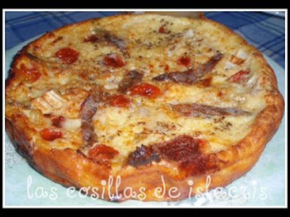 Quiche con tomates cherrys, queso de cabra y anchoas
