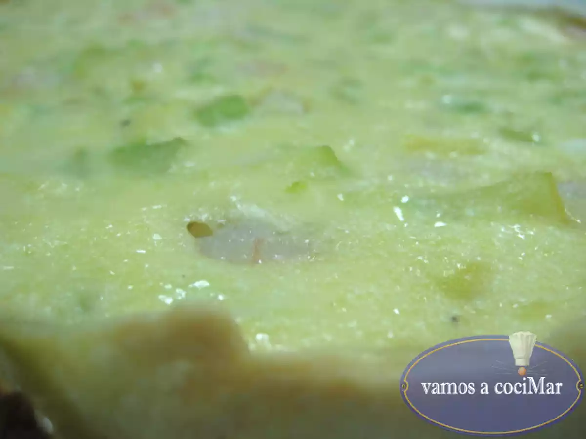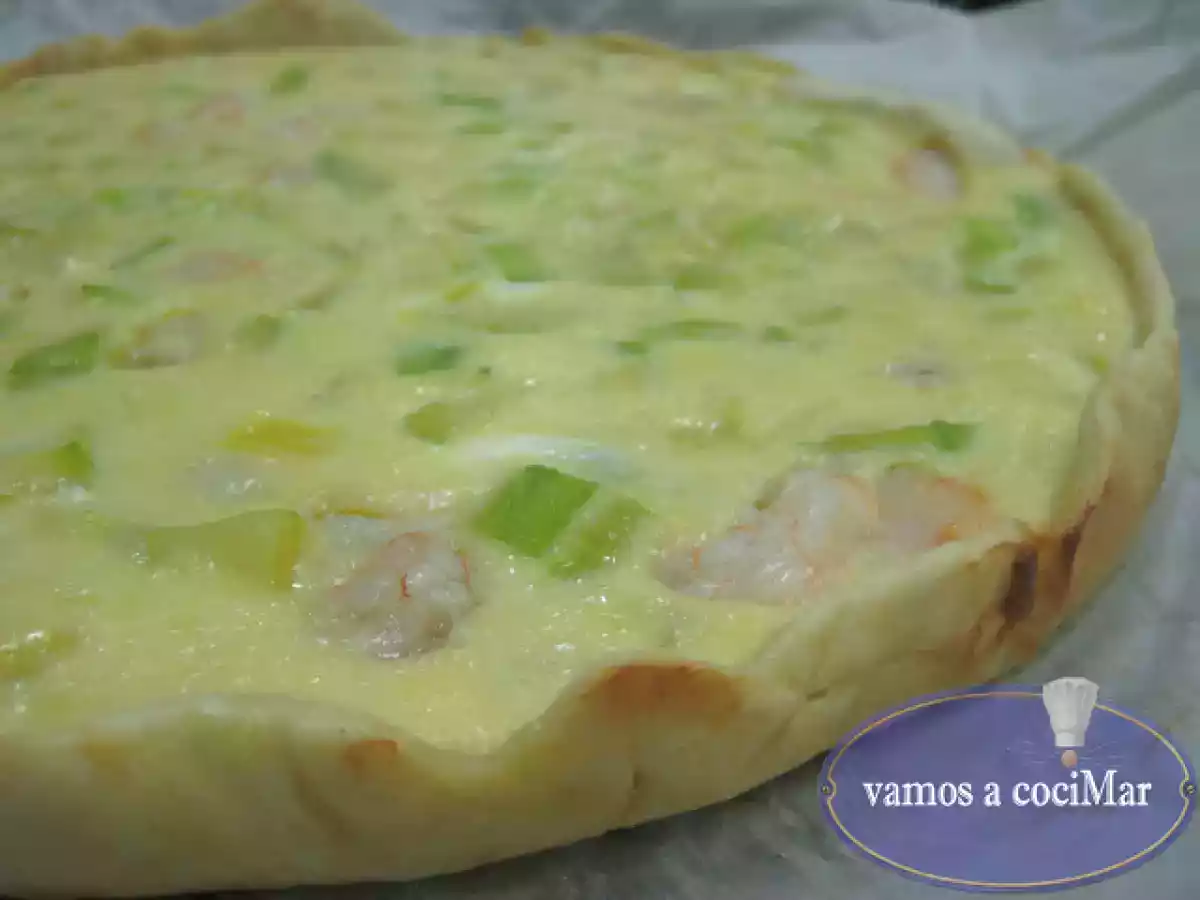 Quiche de calabacín y gambas y el regalo de mi aig AnteriorSiguiente PlatoFácil45 min360 Kcal Enviar esta receta a un amigo Imprimir esta página Preguntar al autor Publicar la foto de esta receta Ingredientes 4 1 lámina de pasta quebrada 200 g de gambas peladas 2 calabacines 1 puerro 1 brick de nata 3 huevos sal y pimienta molida 4 cucharadas de aceite de oliva Costo estimado: 6.3Euros€ (1.58€/porción)
